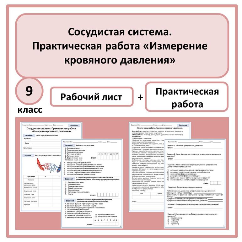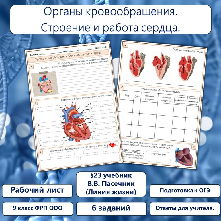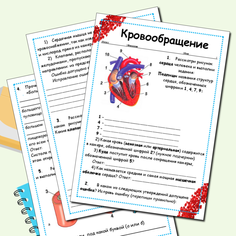 Кровеносная система рабочий лист