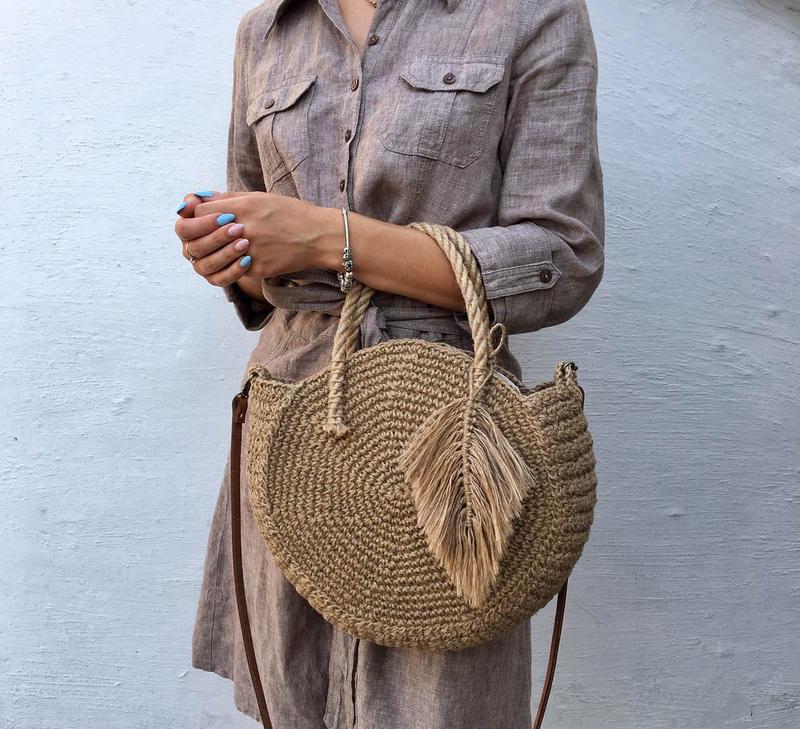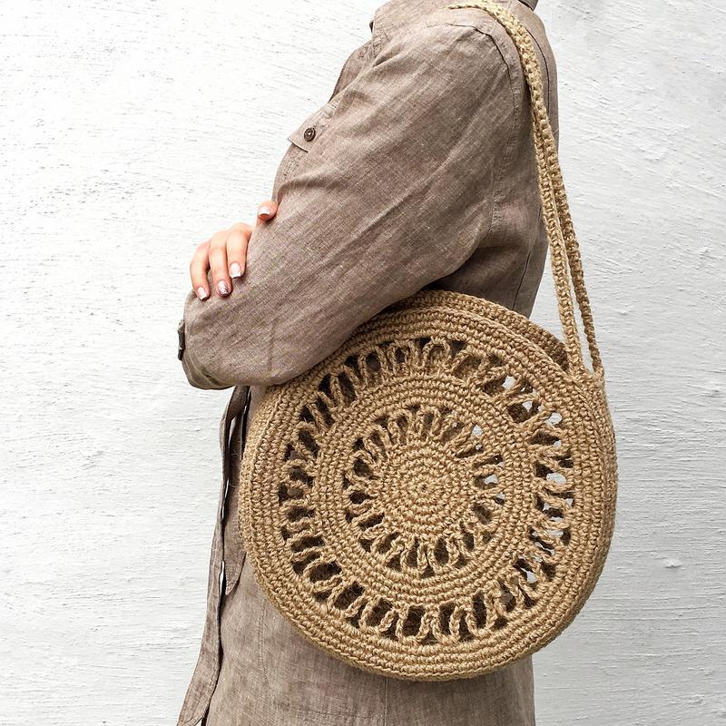 Круглая сумка из джута с длинной ручкой. Летняя сумка. …