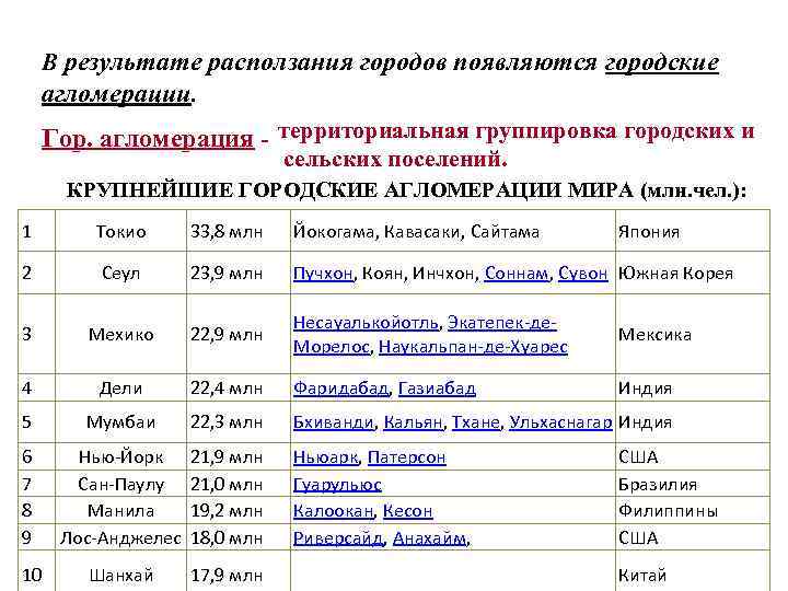 Крупные агломерации примеры