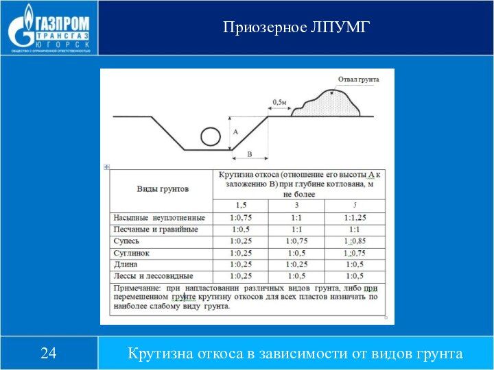 Крутизна откосов зависит от