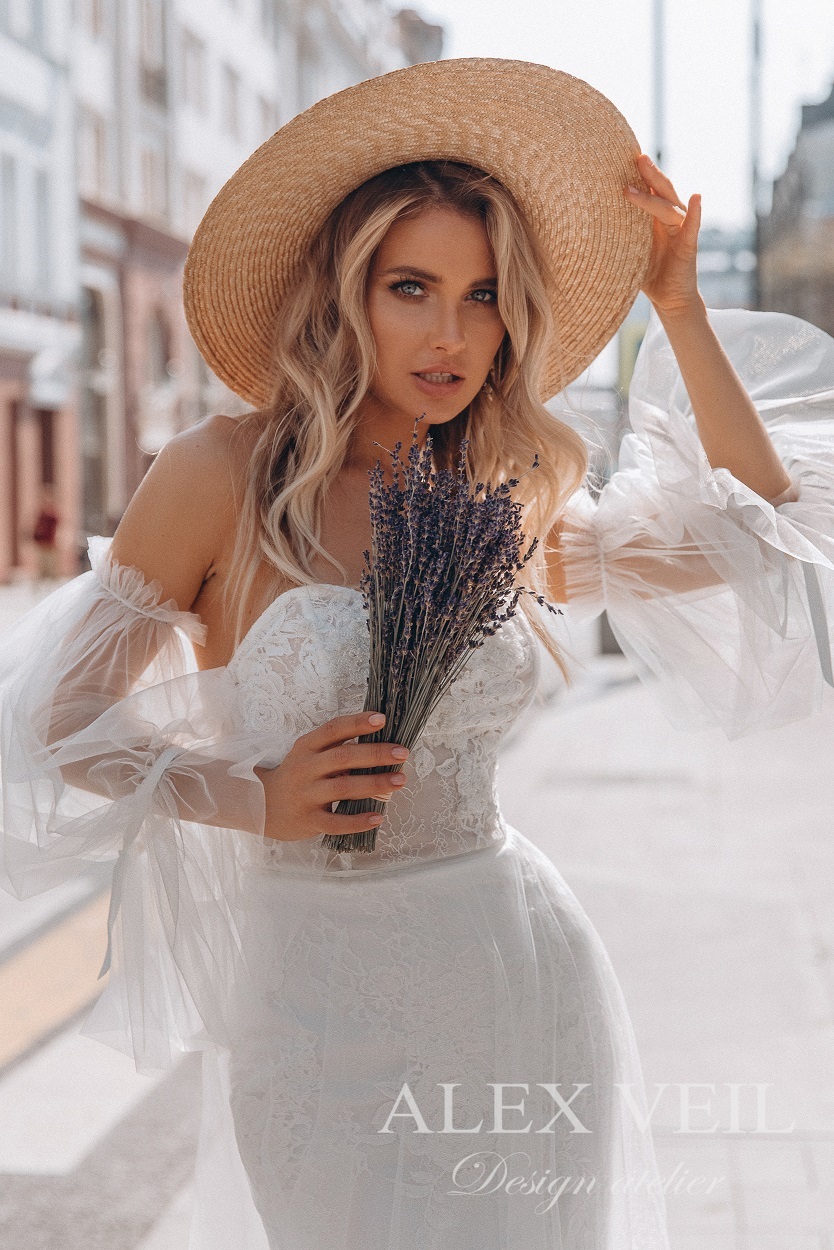 Кружевное свадебное платье рыбка с рукавами Nina Kimoli ...