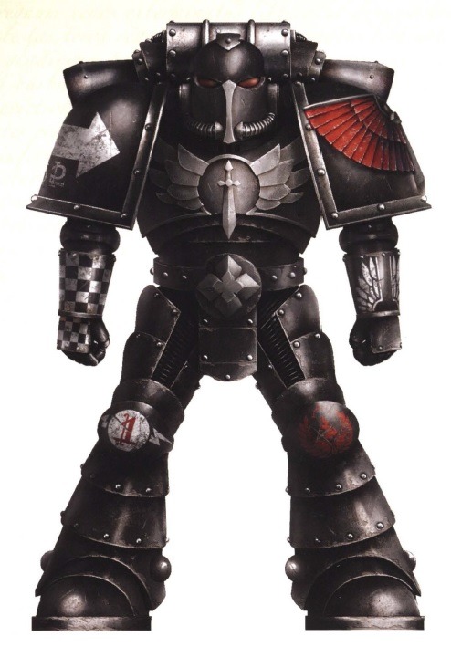 Символ на левом колене декуриона Марнера напоминает геральдику ордена Святителей, преемника Тёмных Ангелов.