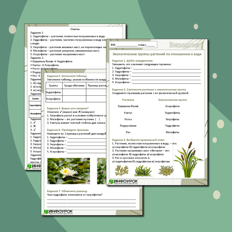 Ксерофиты таблица