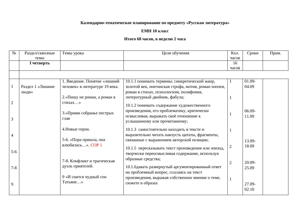 Ктп 10 11 класс русский