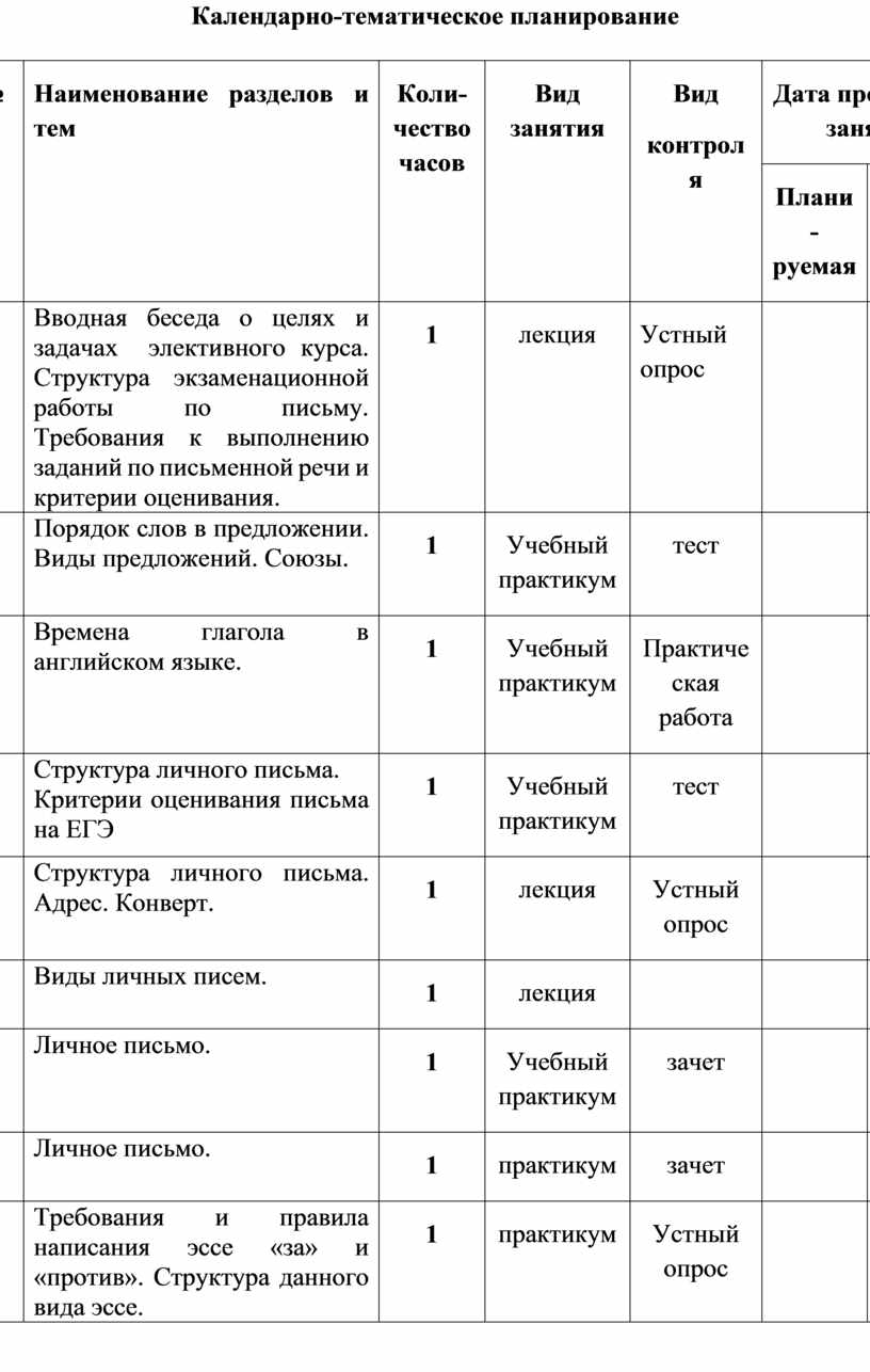 Ктп элективного курса