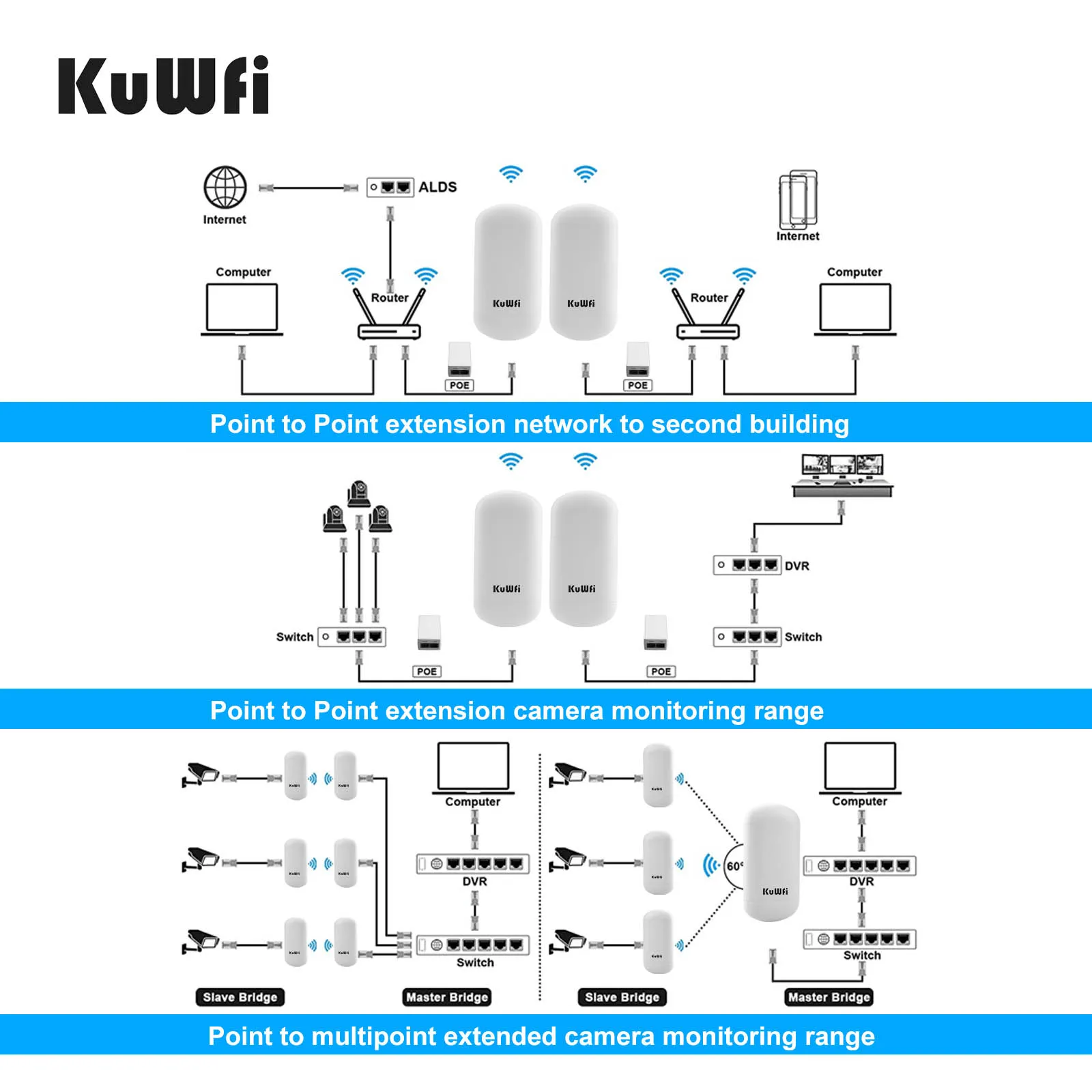 KuWFi 2KM Long Range Outdoor CPE Router 450Mbps 5.8G Wireless Repeater Extender Access Point AP WiFi Bridge Wireless Router - Купить с бесплатной доставкой