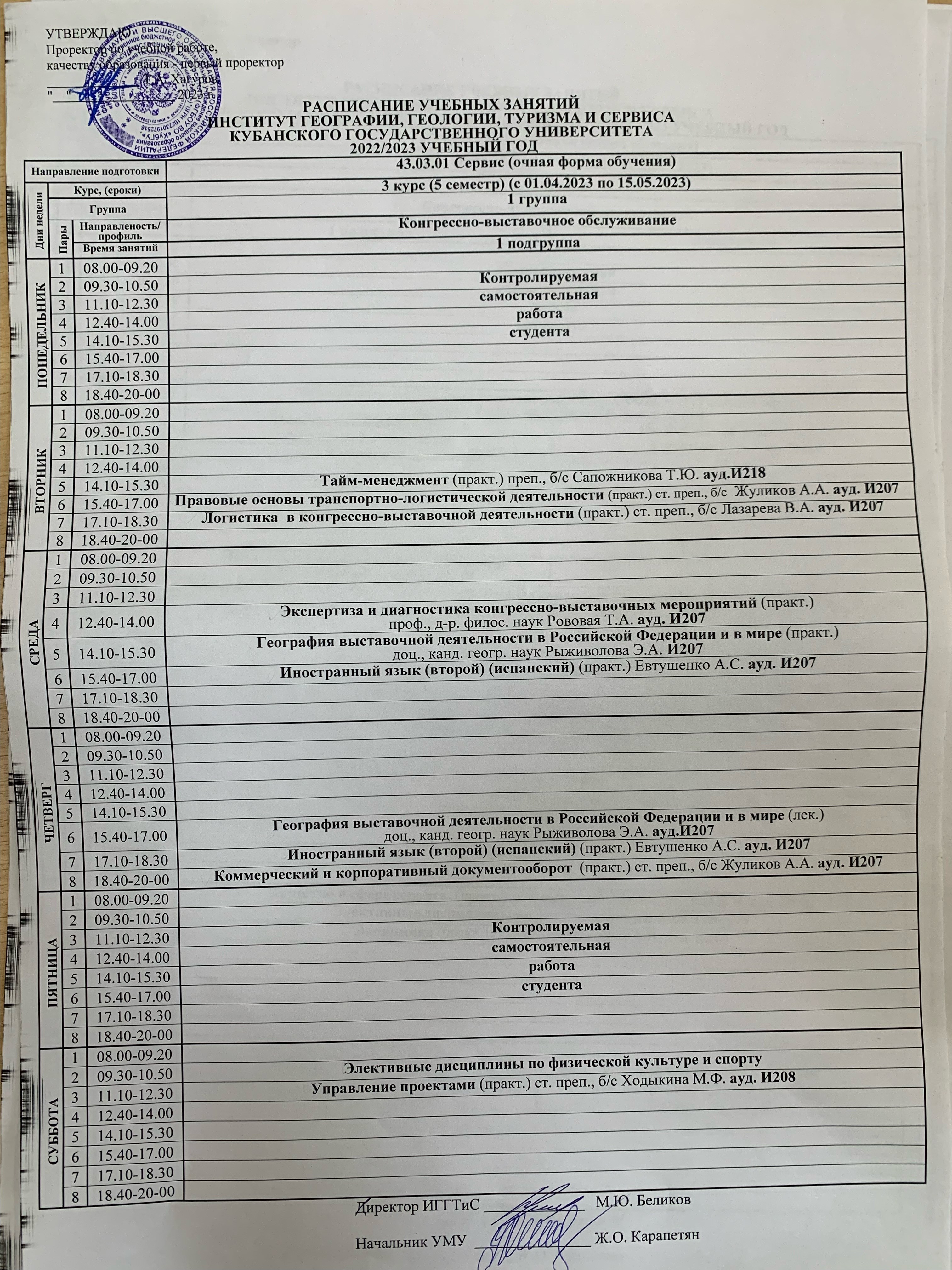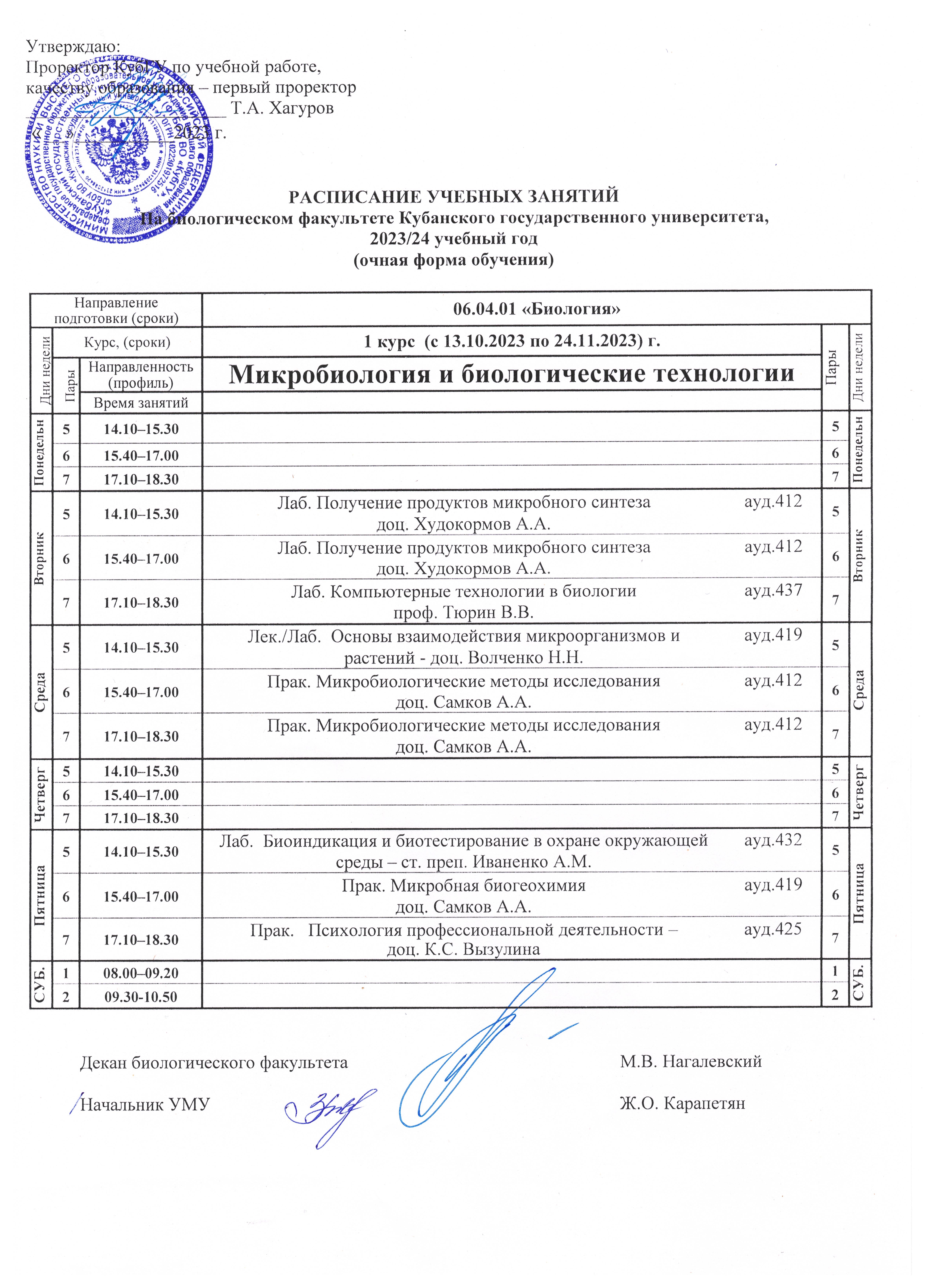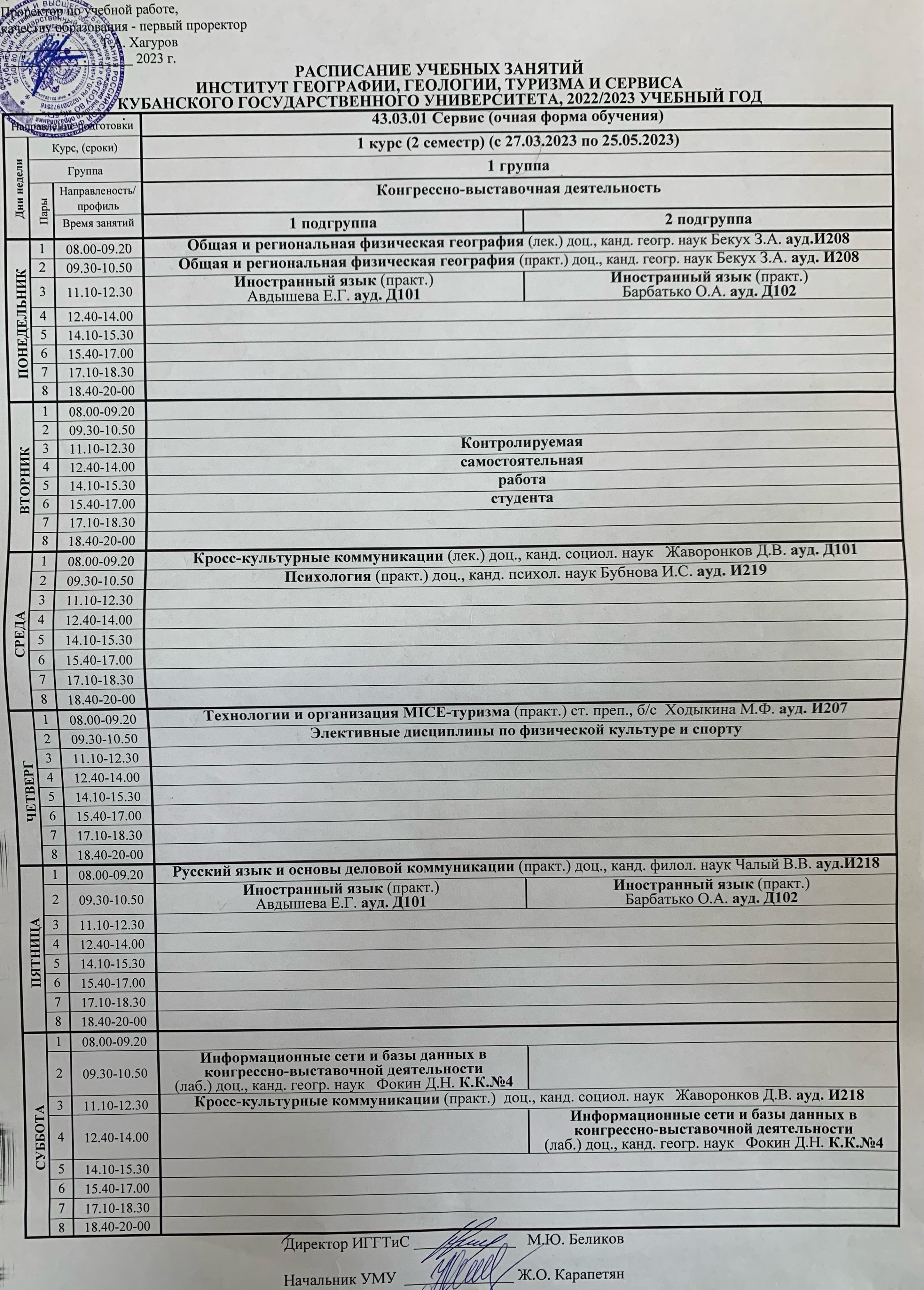 Кубгау расписание пар