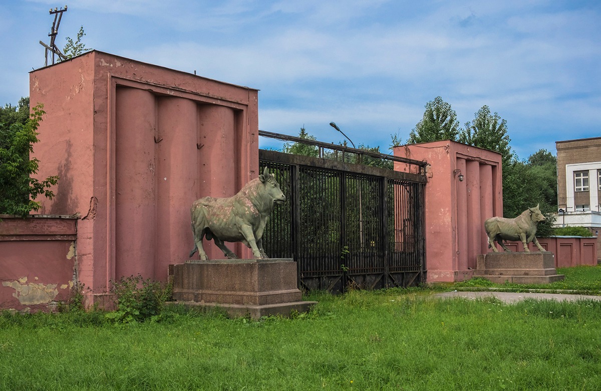 Аттестованный Минкультом эксперт Дарья Зайцева еще в 2018 году рекомендовала не включать «Мясокомбинат им. СМ. Кирова (с оградой и теплоэлектроцентралью)» (Московское шоссе, д. 13) в реестр памятников. В ее исторической справке по быкам 2022 года и вовсе нет информации о том, как и когда скульптуры оказались на Московском шоссе.