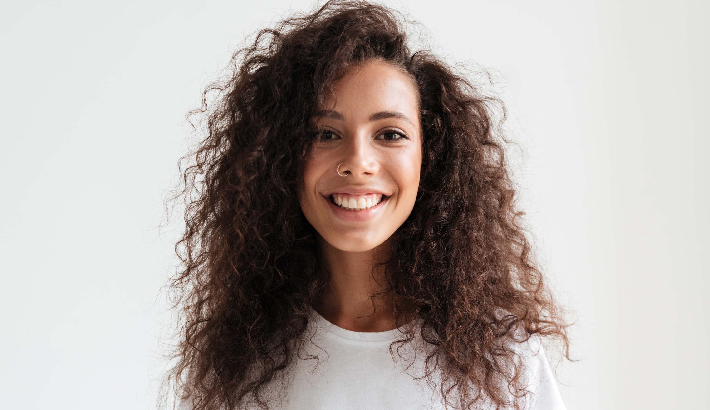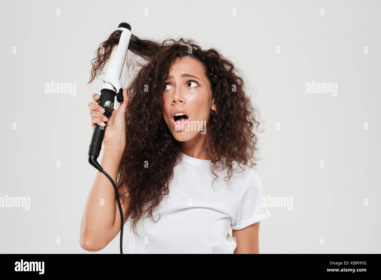 Кудрявая девушка делает