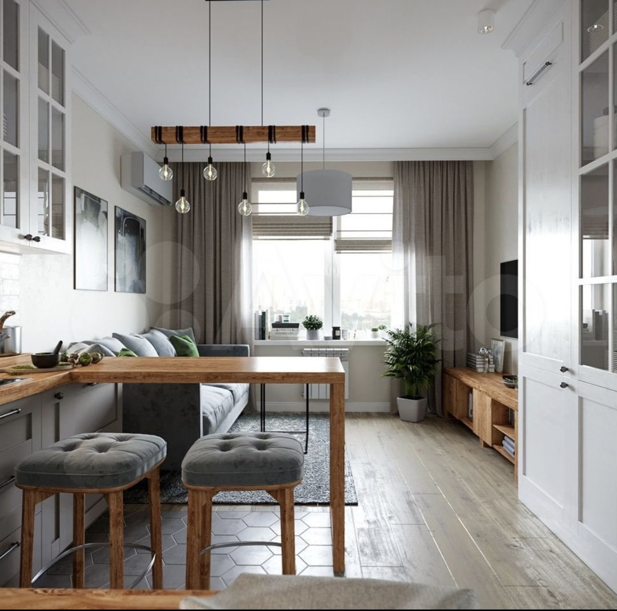 Кухни студии с окном 115 фотографий