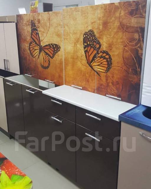 Кухня с фотопечатью Бабочки, МДФ отвечает модным направлениям дизайна . Эта мебель становится частью стилевого решения помещения, придавая интерьеру законченный и . . .