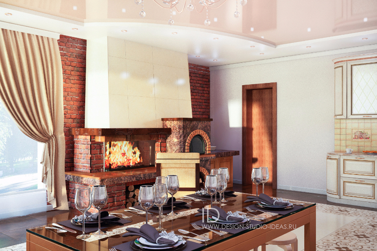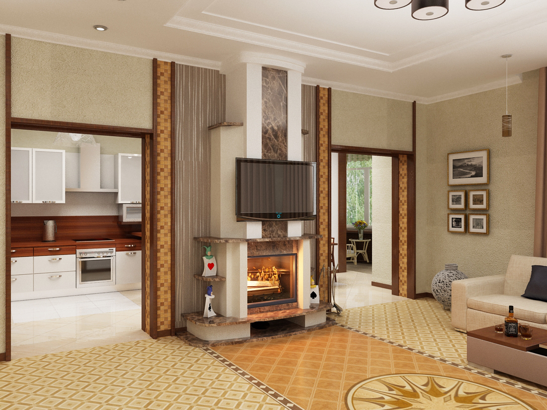 Кухня Гостиная С Печкой Фото 117 фотографий