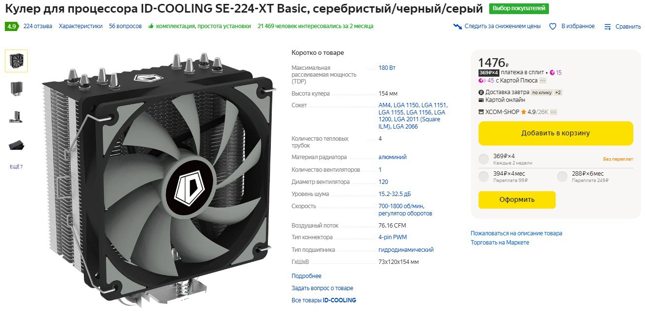 Кулер мощность вт