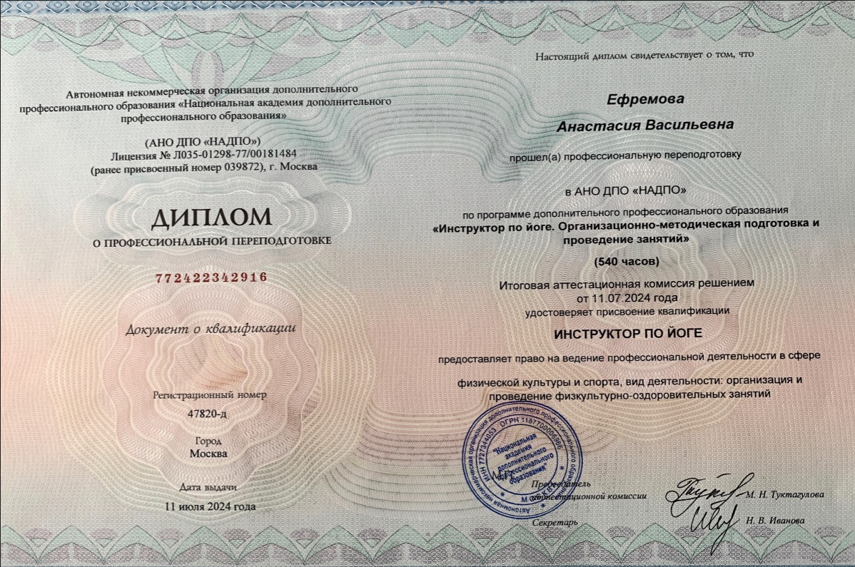 Инструктор Кундалини йоги, Йога-нидры и Хатха- йоги.