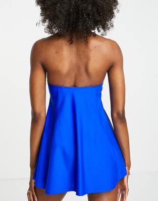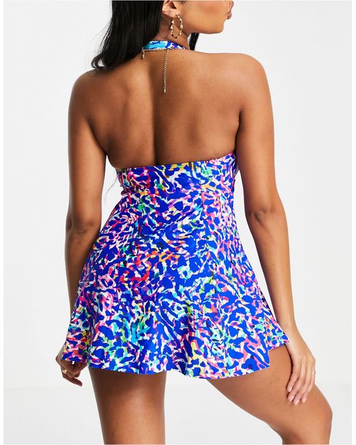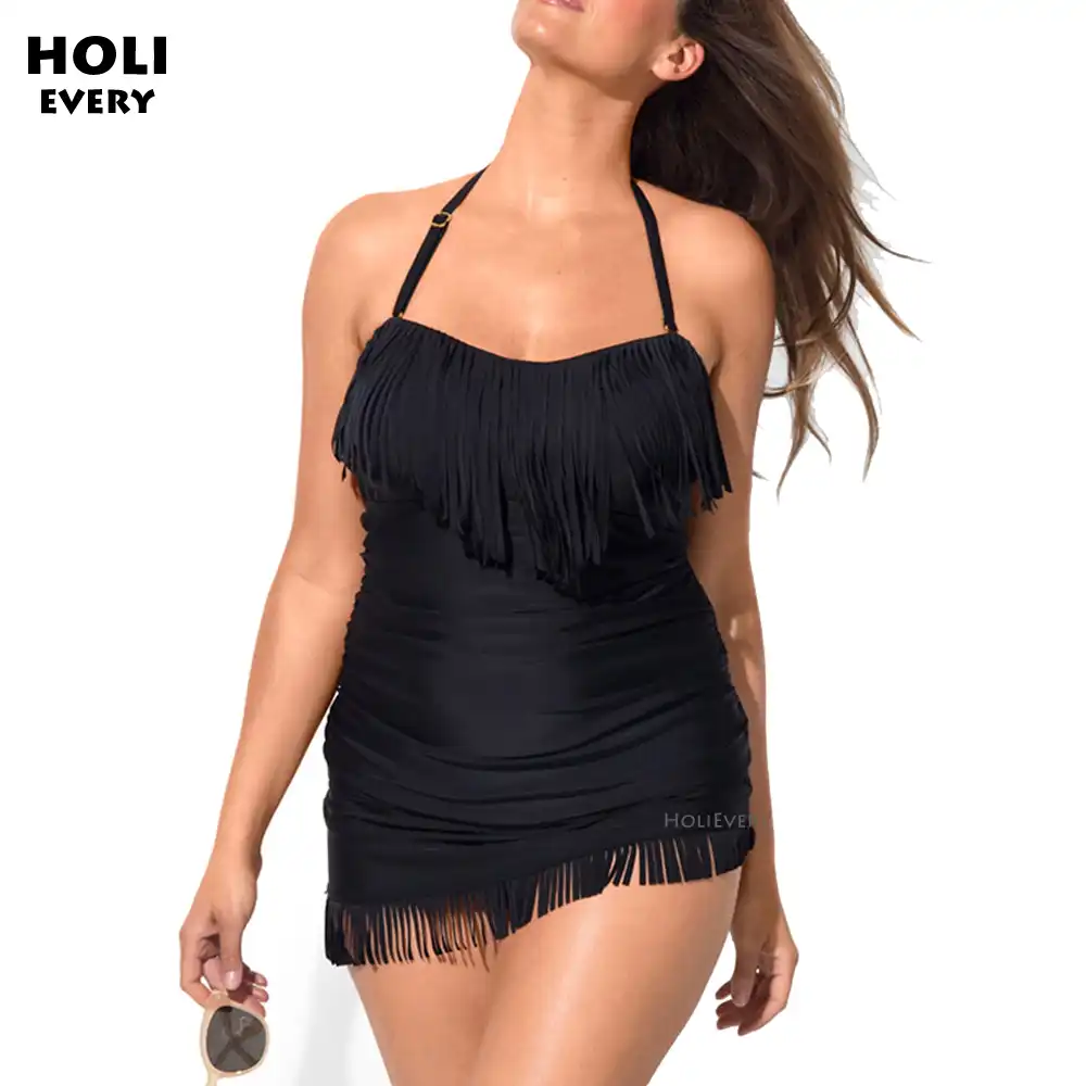 Данный пляжный костюм является мини-платьем . Купальник отлично маскирует крупные бедра, скрывает массивные плечи, поэтому данная модель подходит для женщин любой комплекции .