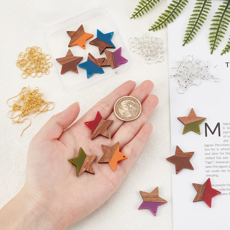 Купить 1 Box Colorful Resin Wood Pendants Two Tone Star Charms with Ear Hooks Jump Rings for Jewelry Making Earrings DIY Crafts Decor за 400рублей