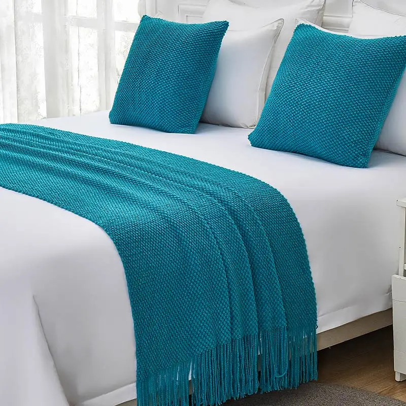Купить 1 Piece Bedspreads Solid Color Tassel Bed Runners Scarves Modern Bed Throws for Foot of Bed Queen King Size Home Decoration за 850рублей