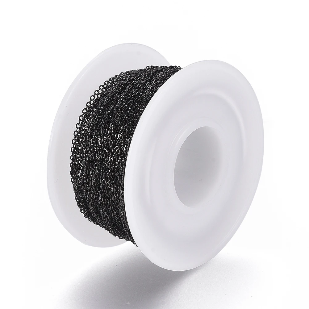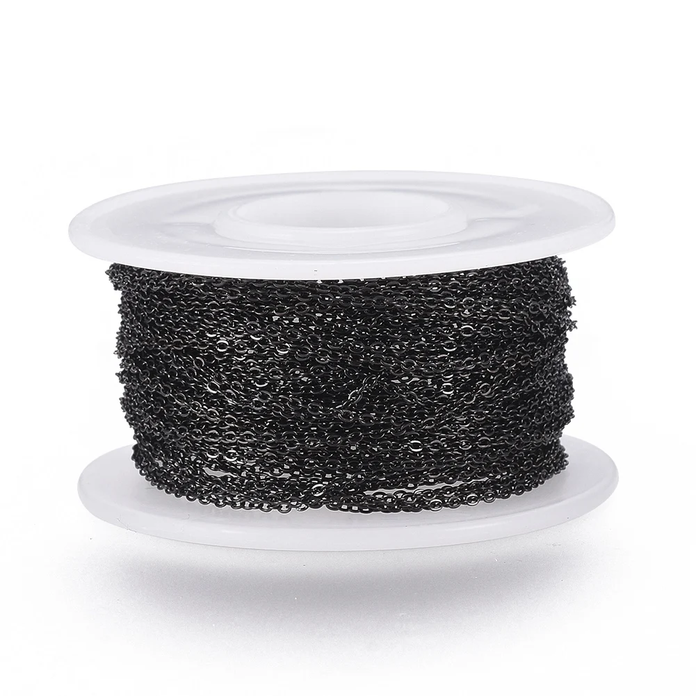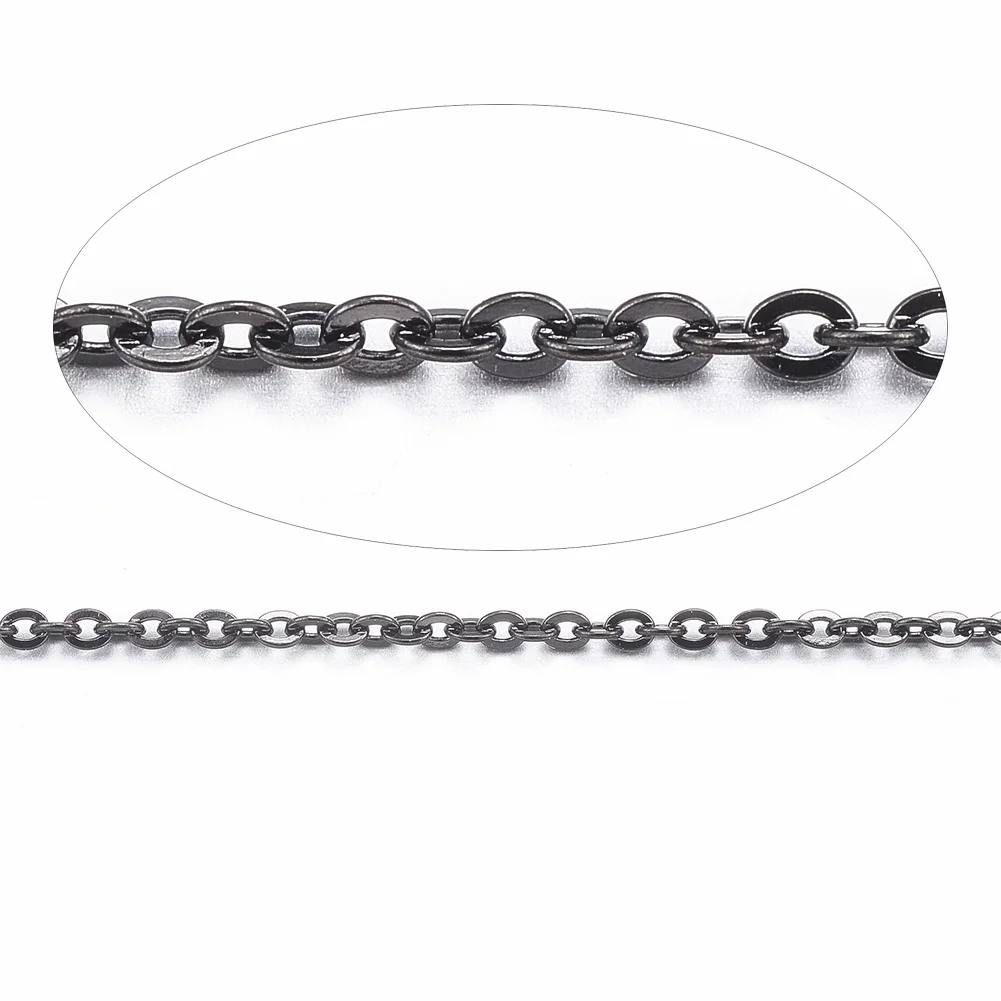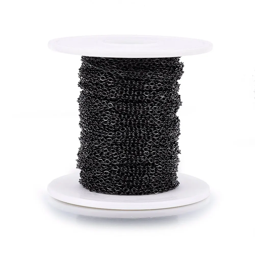 Купить 1 Roll 304 Stainless Steel Cable Chain Flat Oval Soldered Handmade Electrophoresis Black Chain with Spool for DIY Jewelry Making за 550рублей