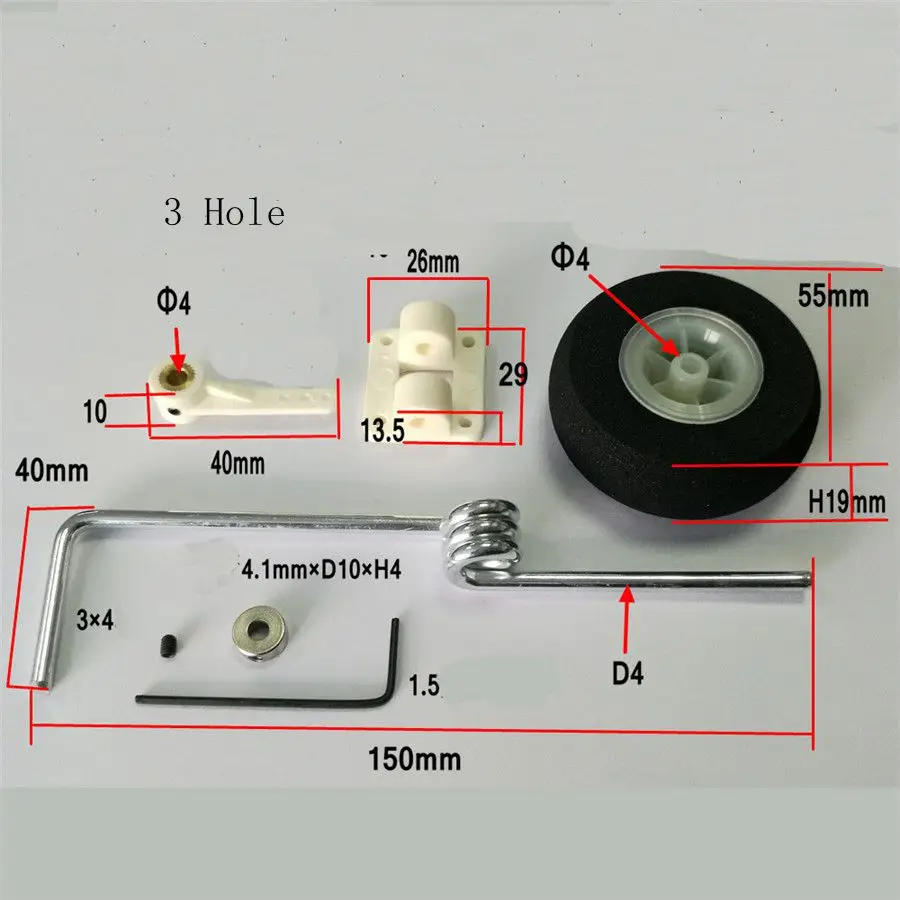 Купить 1 Set Landing Gear Steering For Front Wheel With 3/2 Hole Steering Arm 46-60Class For RC Airplane за 250рублей