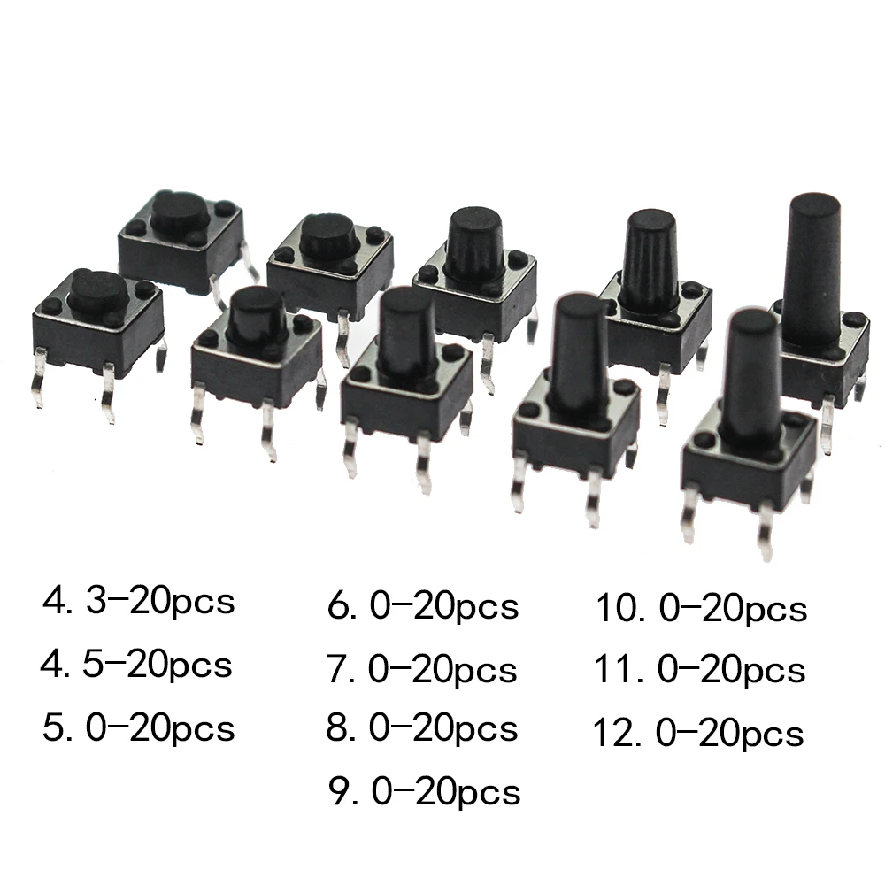 Купить 10 models 200pcs 6*6 Tact Switch Tactile Push Button Switch box Kit Height:4.3MM~12MM DIP 4P micro switch 6x6 Key switch за 350рублей