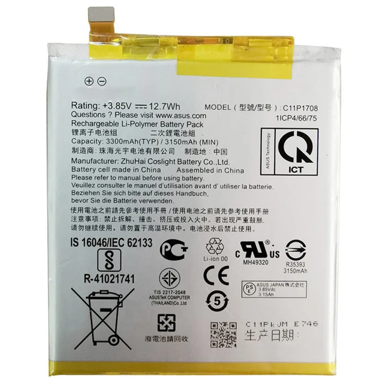 Купить 100% Original For ASUS High Capacity C11P1708 Phone Battery For Asus Per ZenFone 5 ZE620KL 3300mAh +Free Tools за 600рублей