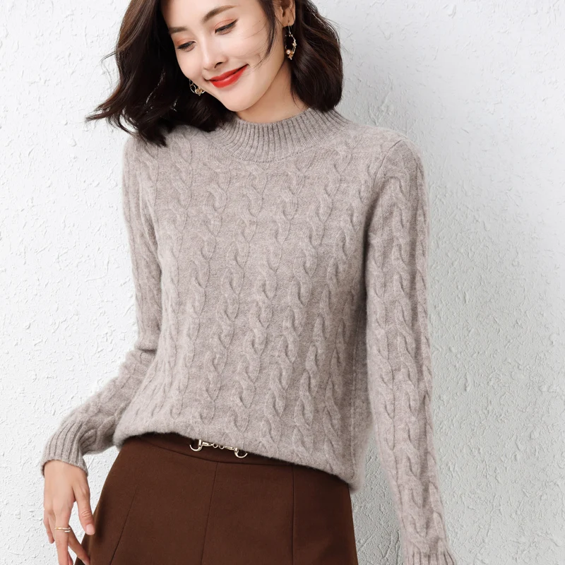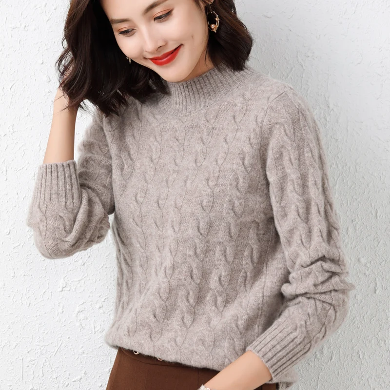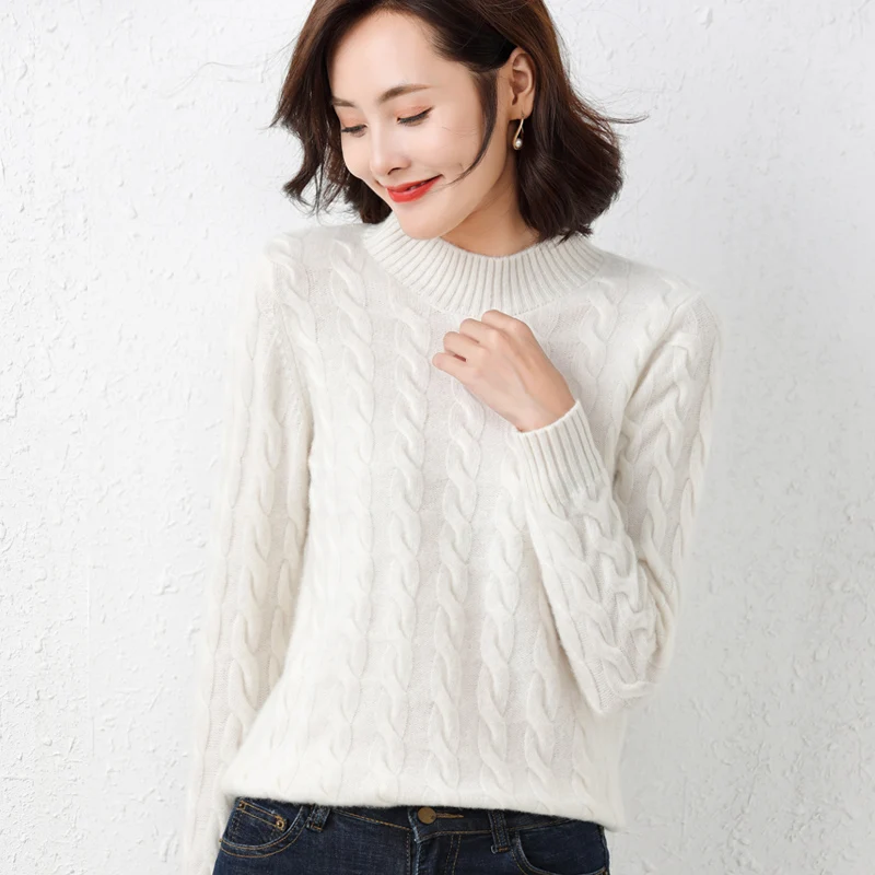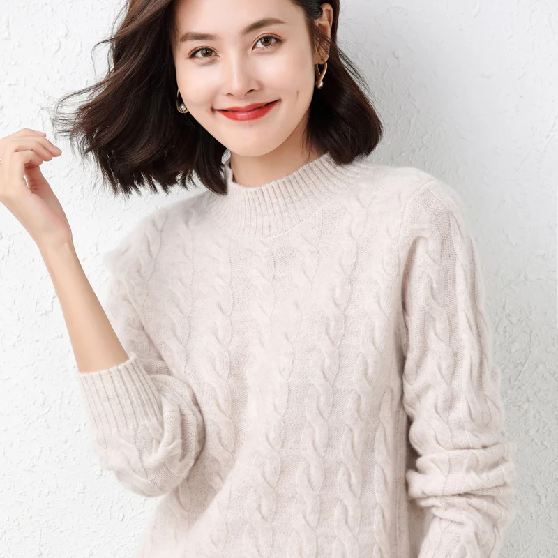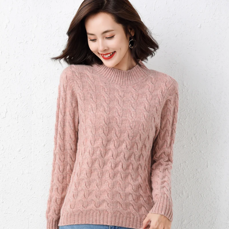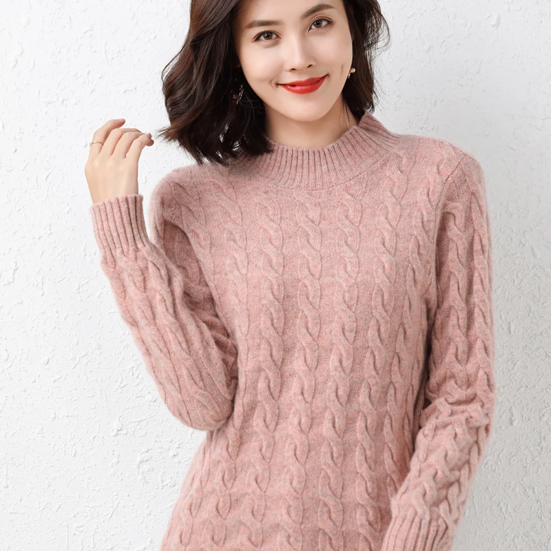 Купить 100 Pure Woolen Sweater Women Autumn Winter 2022 New Twist Round Neck Pullover Sweater Loose and Thick Knitted Cashmere Sweater за 1850рублей