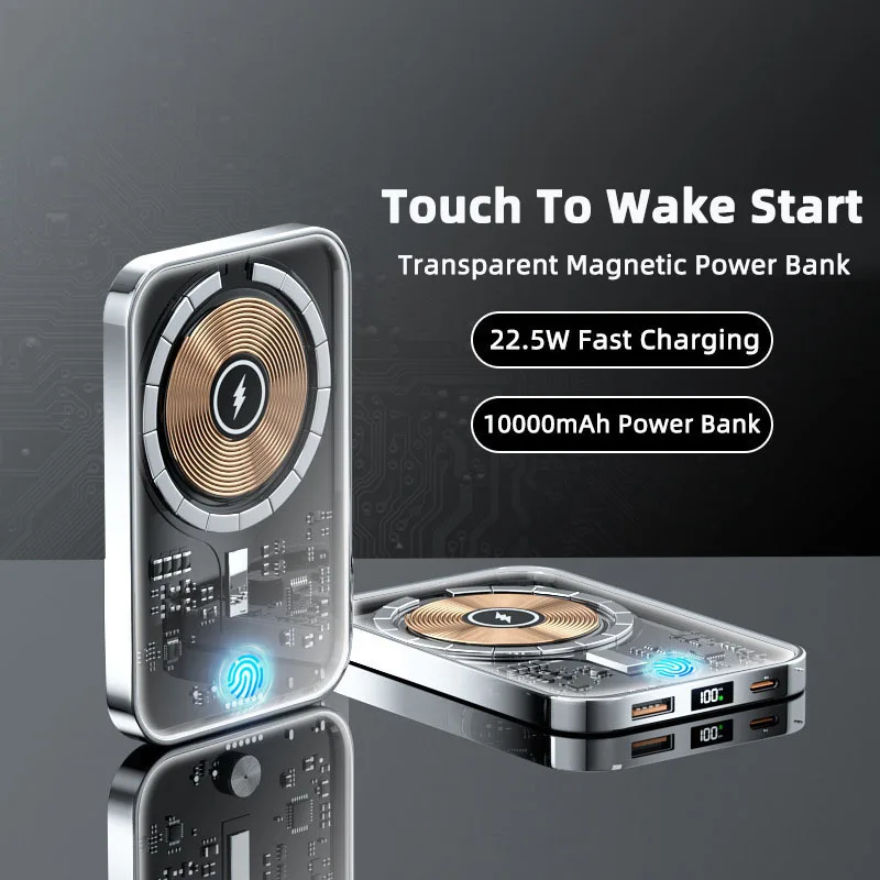 Купить 10000mAh Transparent Macsafe Powerbank Magnetic Wireless Power Bank Portable External Auxiliary Battery for iPhone 14 13 Xiaomi за 1400рублей