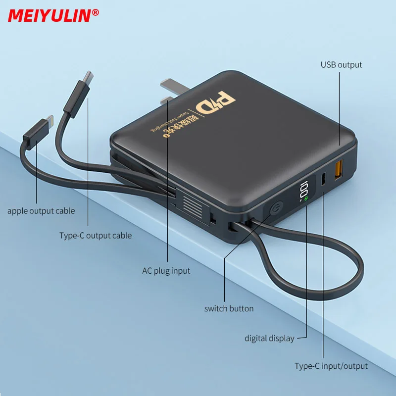 Купить 10000mah Power Bank Fast Charging With 2 Cable Portable AC PD 22.5W USB C Charger External Battery For iPhone 13 Xiaomi Samsung за 1050рублей