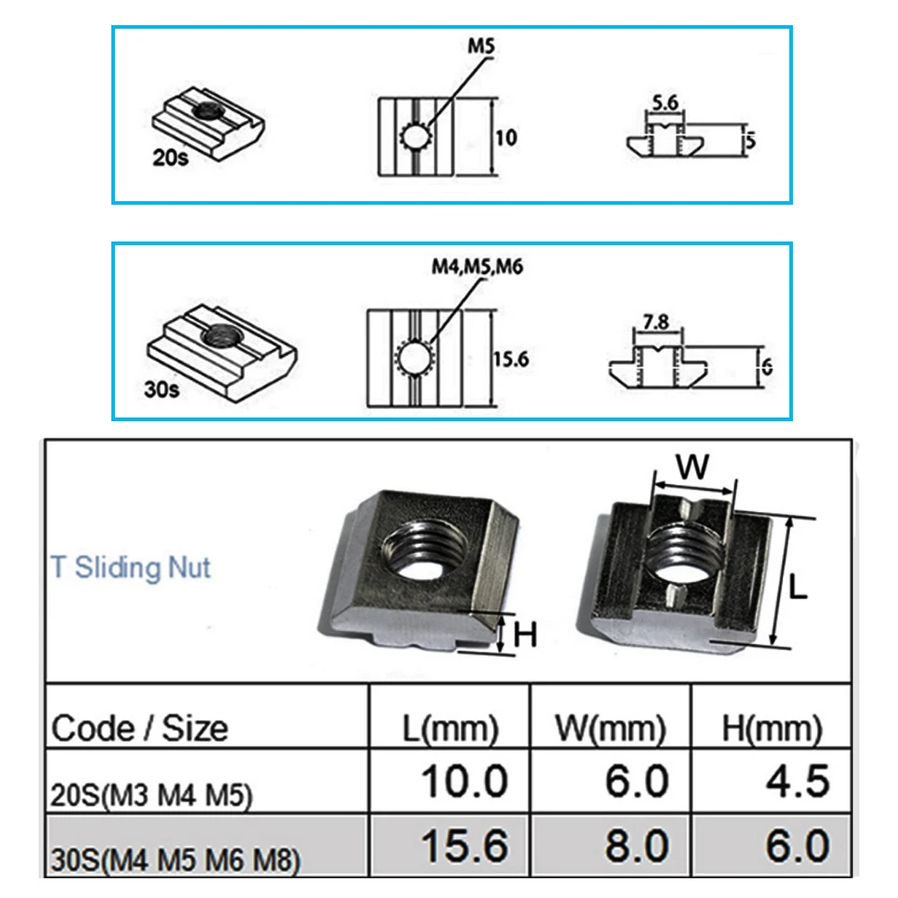 Купить 100pcs 50ps 20ps M3 M4 M5 M6 M8 T Block Square nuts T-Track Sliding Hammer Nut for Fastener Aluminum Profile 2020 3030 за 350рублей