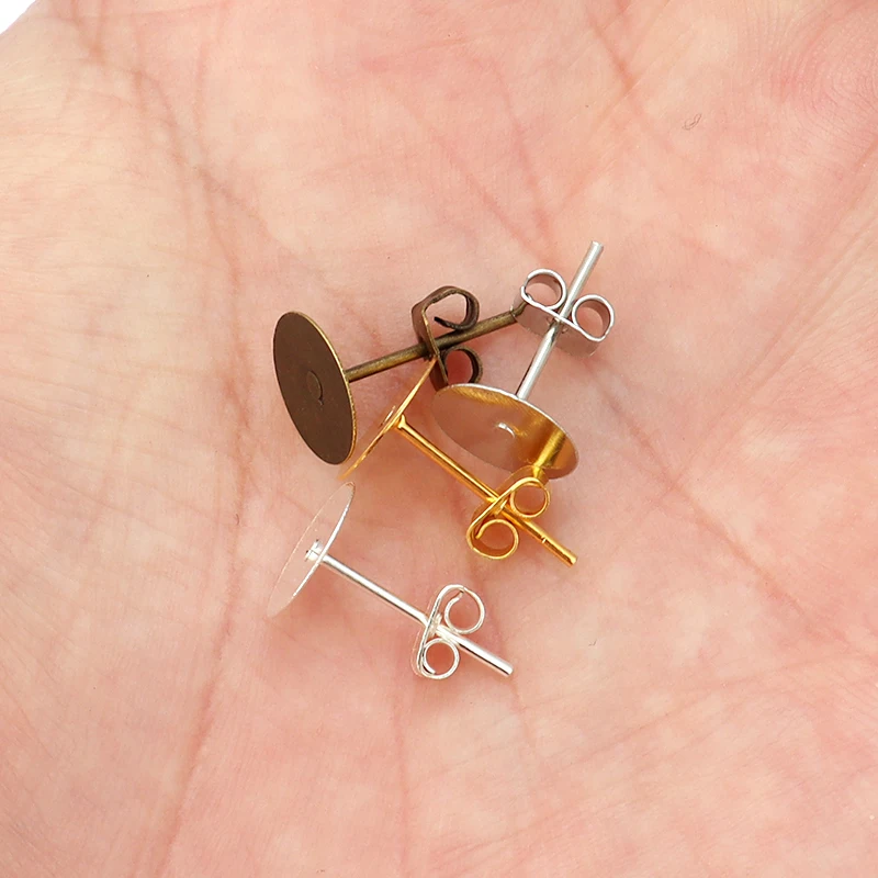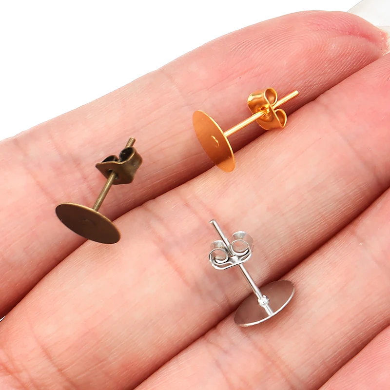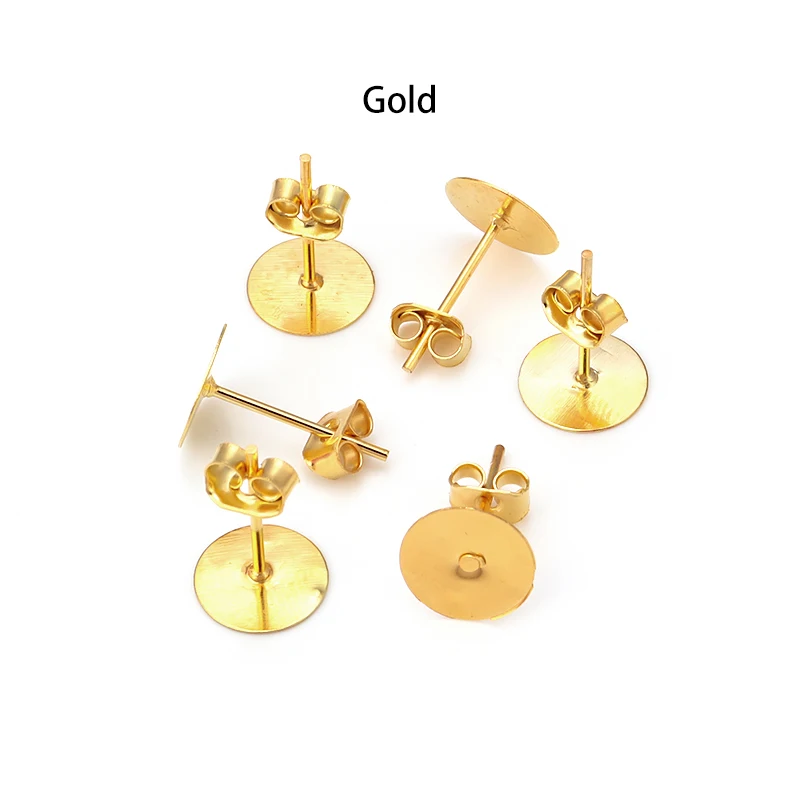 Купить 100pcs/lot 4 6 8 10mm Gold Color Blank Post Earring Studs Base Pins With Earring Plug Ear Back For Jewelry Makings Accessories за 100рублей