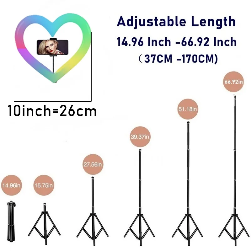 Купить 10Inch Dimmable RGB LED Ring Fill Light Heart Photo Ringlight Lamp Photo Lighting With Tripod For Youtube Makeup Video Live Volg за 850рублей