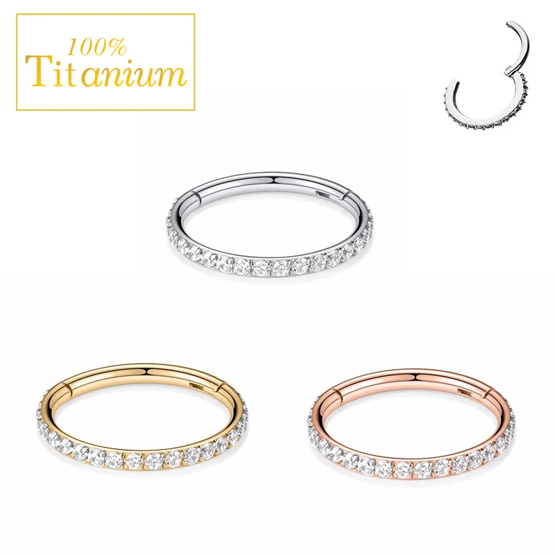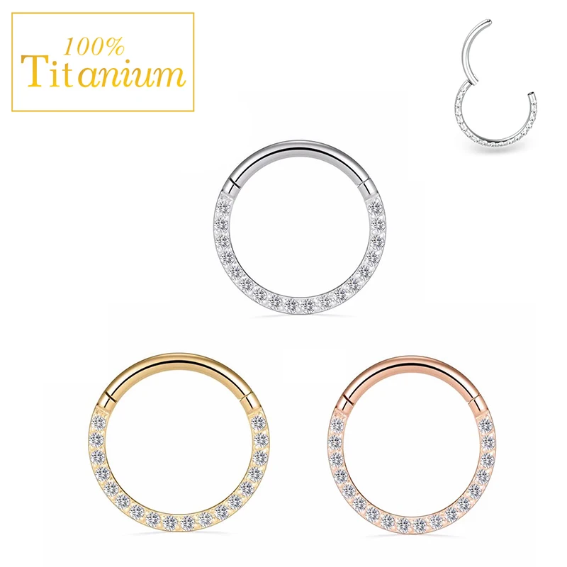Купить 10PCS Clear Zircon Earrings Hoop G23 Titanium Hinged Segment Clicker Nose Rings Ear Cartilage Helix Piercing Jewelry Wholesale за 1950рублей