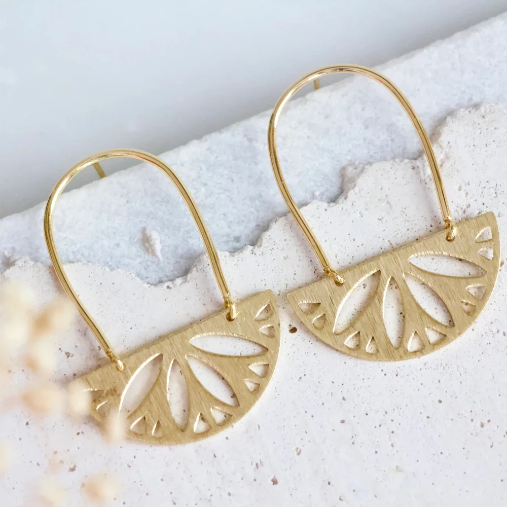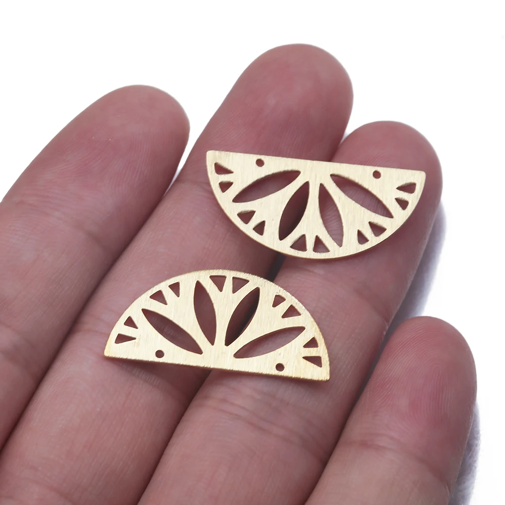 Купить 10Pcs Textured Raw Brass Half Round Cut Lotus With 2 Holes Link Semi Circle Connectors For Diy Earrings Jewelry Choker Making за 150рублей