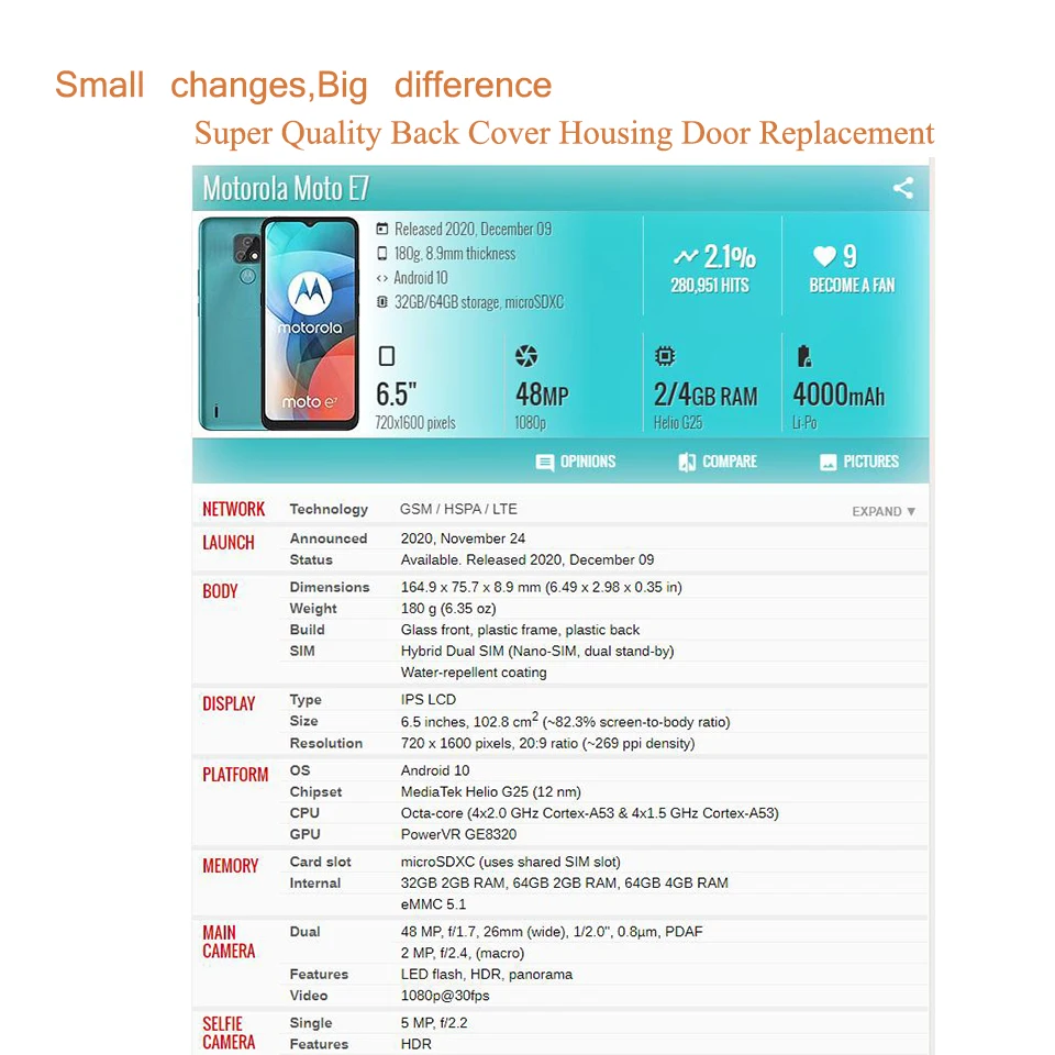 Купить 10Pcs/Lot For Motorola Moto E7 XT2052 Housing Battery Cover For Moto E7 Back Cover Case Rear Door Chassis Shell Replacement за 1700рублей