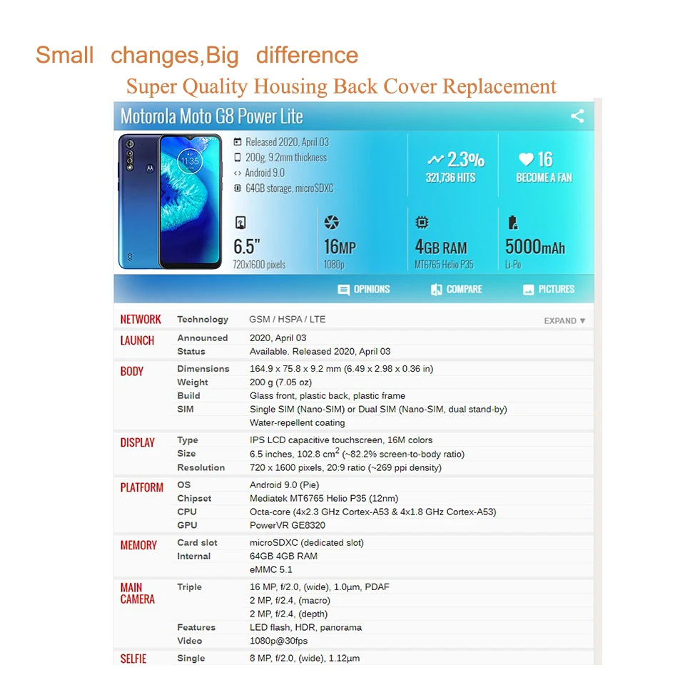 Купить 10Pcs/Lot For Motorola Moto G8 Power Lite XT2055-2 Housing Battery Cover Back Cover Case Rear Door Chassis Shell Replacement за 1650рублей