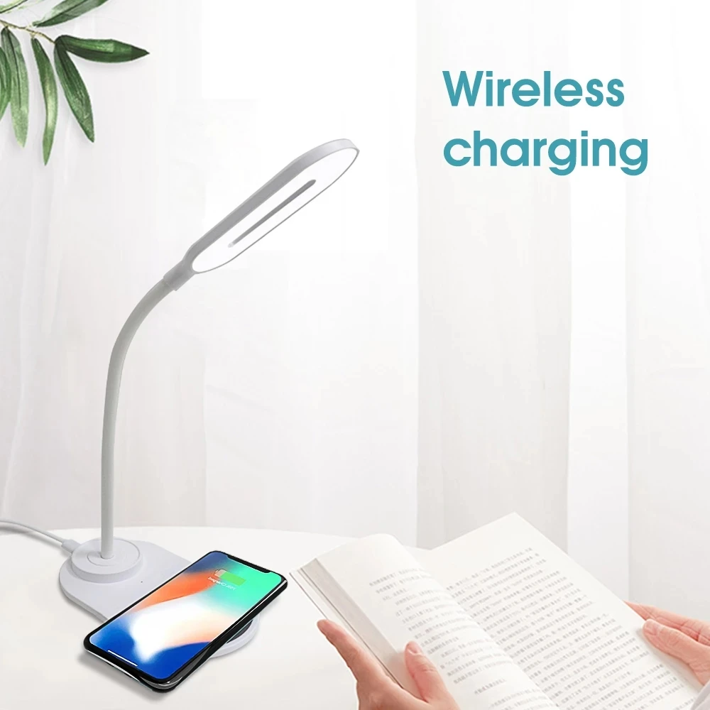 Купить 10W QI Quick Wireless Charging LED Table Desk Lamp Portable Eye Protect 360 Degree Touch Control Night Light For iPhone Xiaomi за 750рублей