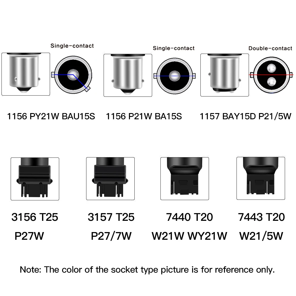 Купить 10pcs Car T20 7440 7443 LED Bulbs White LED 1156 P21W BA15S LED 1157 BAY15D PY21W 3157 For Brake Reverse Light Turn Signal 12V за 900рублей