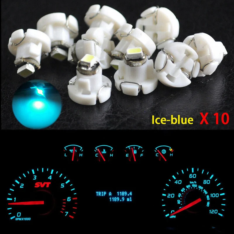 Купить 10pcs Ice Blue T4.2 Neo Wedge 1SMD LED Instrument Dash Climate Control Base Light Bulbs for Dashboard Control Lamp Universal за 250рублей