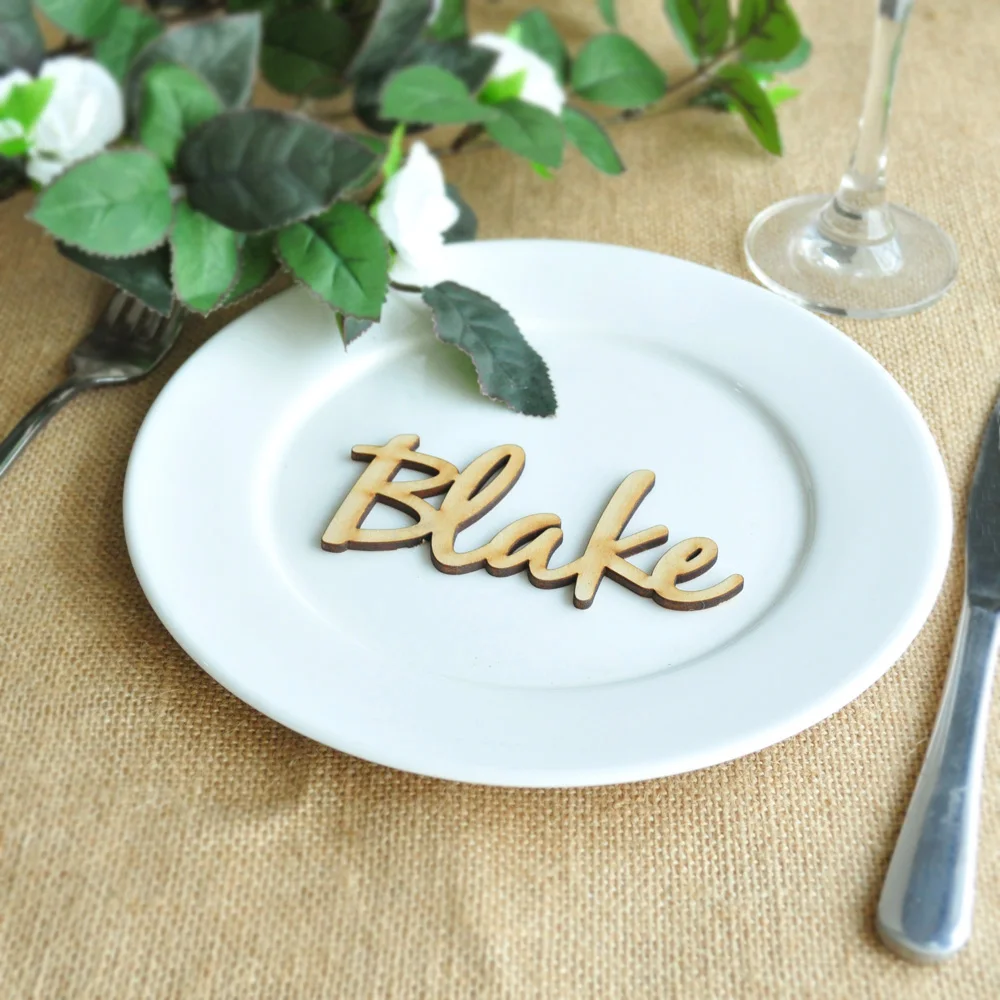Купить 10pcs Personalized Wood Place Card Rustic Name Cards Custom Name Tags Wedding Reception Wood Place Signs за 450рублей