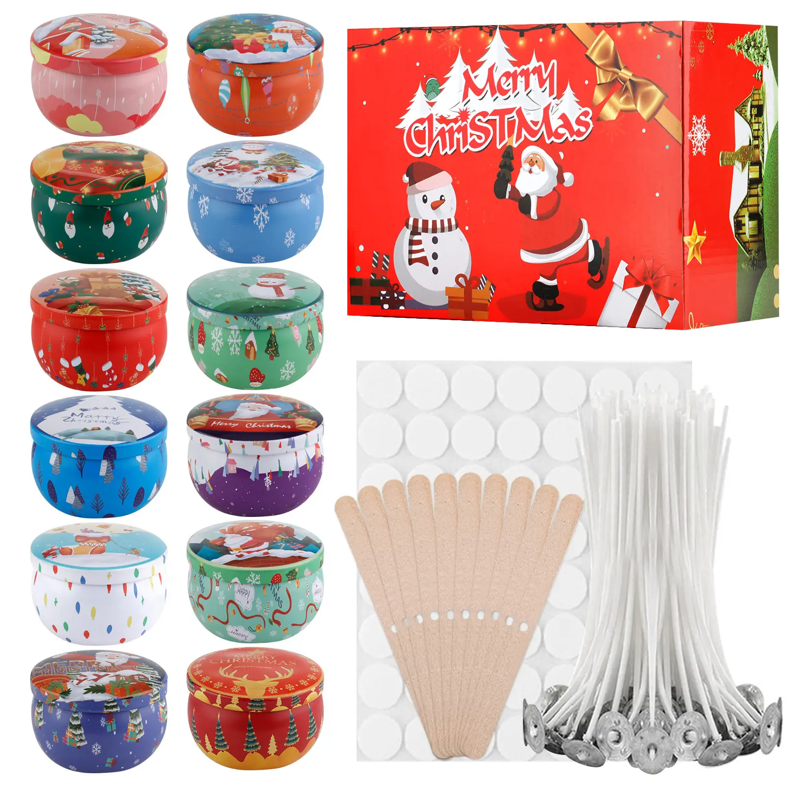 Купить 12PCS Christmas Gift 2.5OZ Empty Tinplate Candle Box Tins Cans Devices for Aroma Essential Oil Making Kit Cylindrical Tin за 600рублей