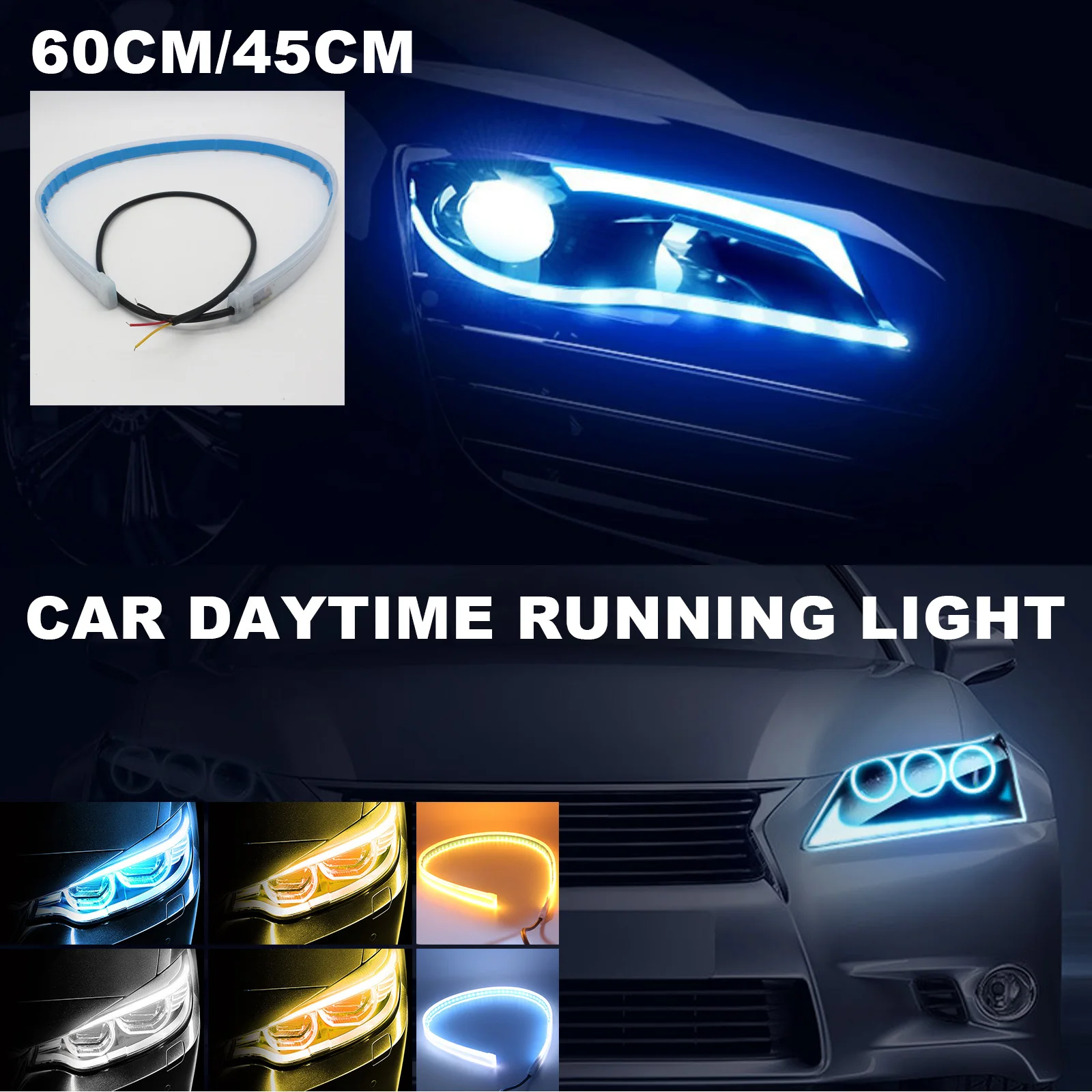 Купить 12V Car Led Light Strip DRL Daytime Running Lamp Strips Flexible LED Auto Headlight Surface Decorative Lamp Turn Signal Lights за 350рублей