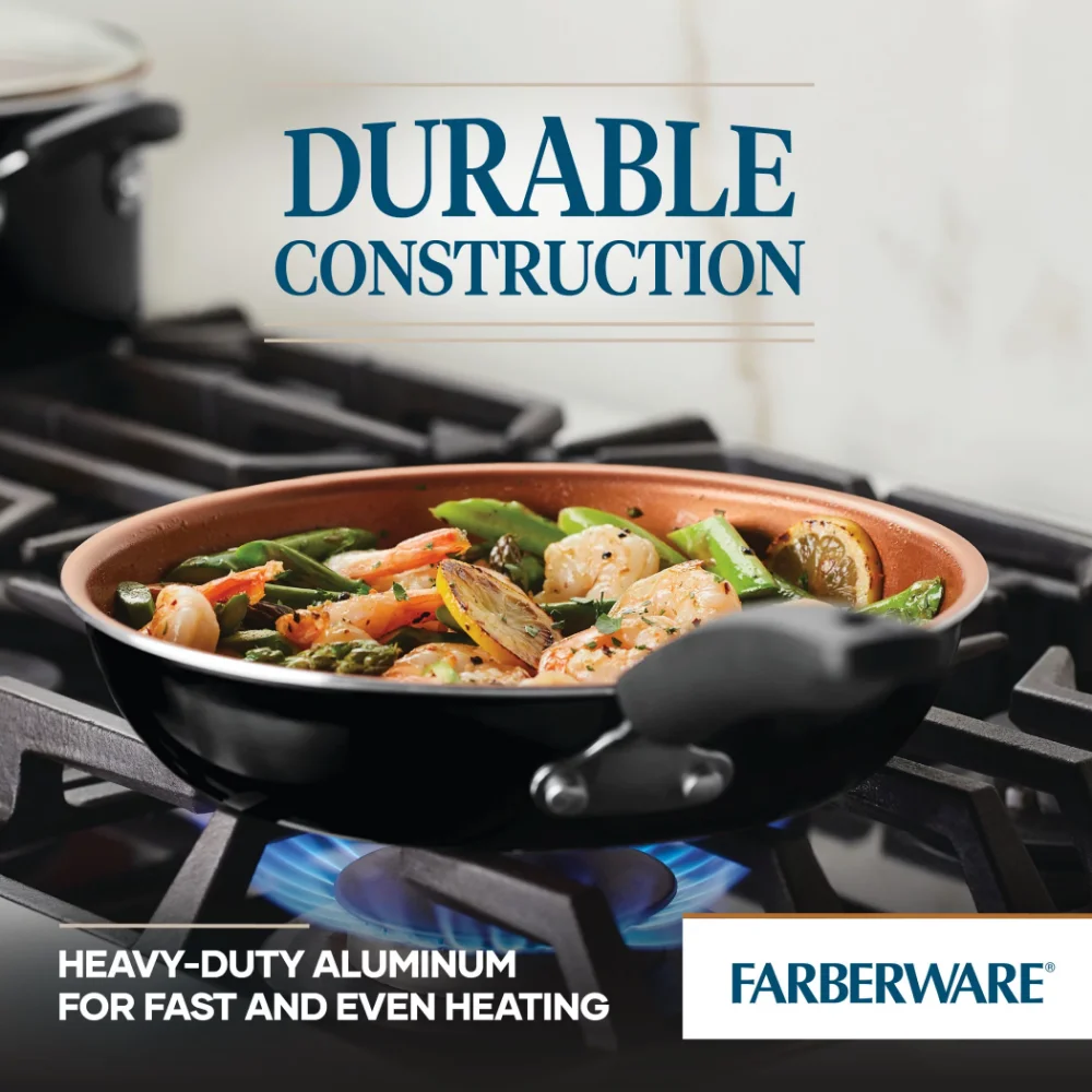 Купить 14-Piece Easy Clean Pro Ceramic Nonstick Cookware Set, Black Cookware Sets Pots and Pans за 1950рублей