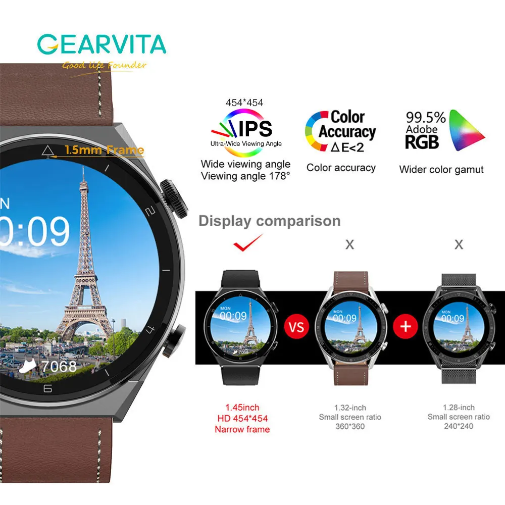 Купить 1.45inch IPS 454*454 Ultra HD GPS Tracking 320mAh NFC IP68 Wireless Charge Bluetooth Call For Huawei GT3Pro Xiaomi Watch за 2050рублей