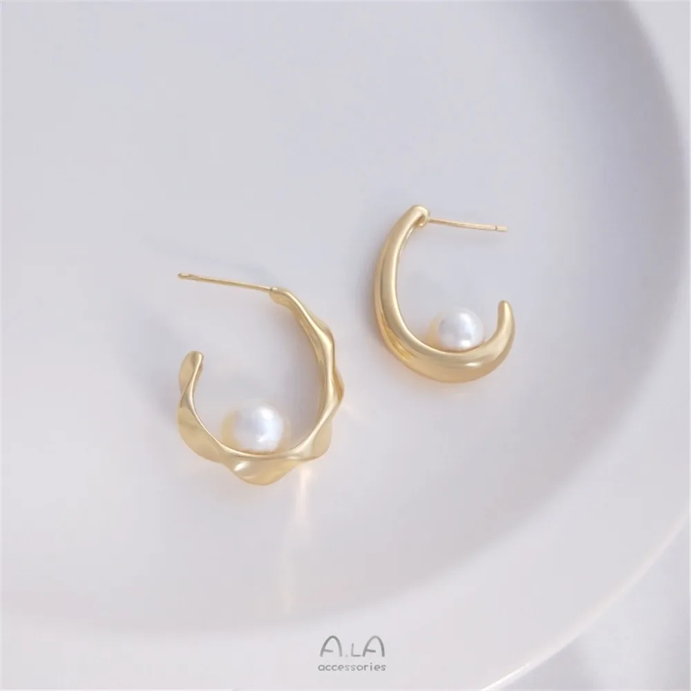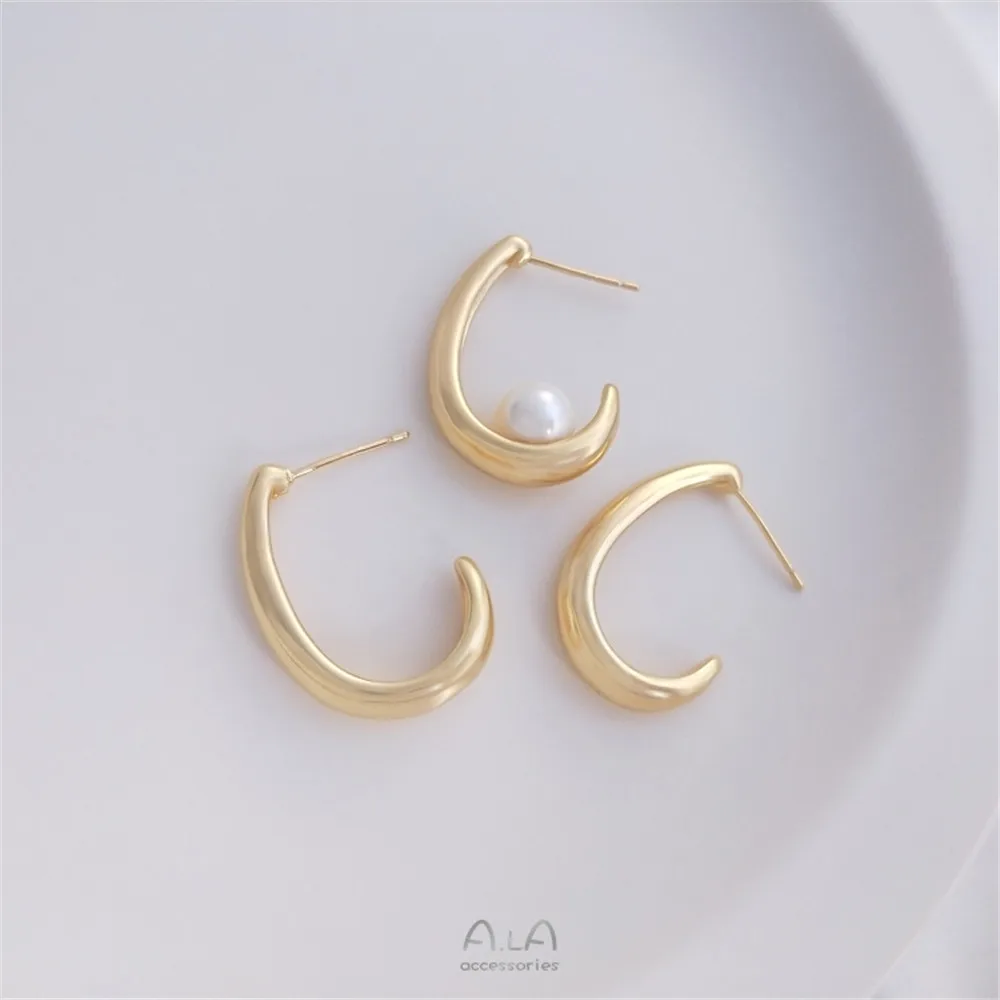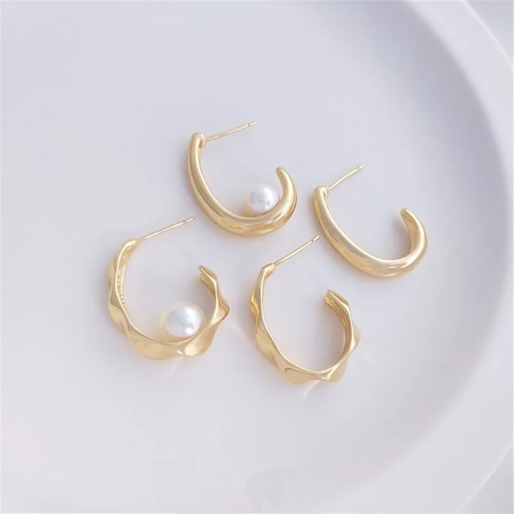 Купить 14K Gold Filled Plated South Korea C type fashion earring temperament simple French 925 silver needle diy earring за 150рублей