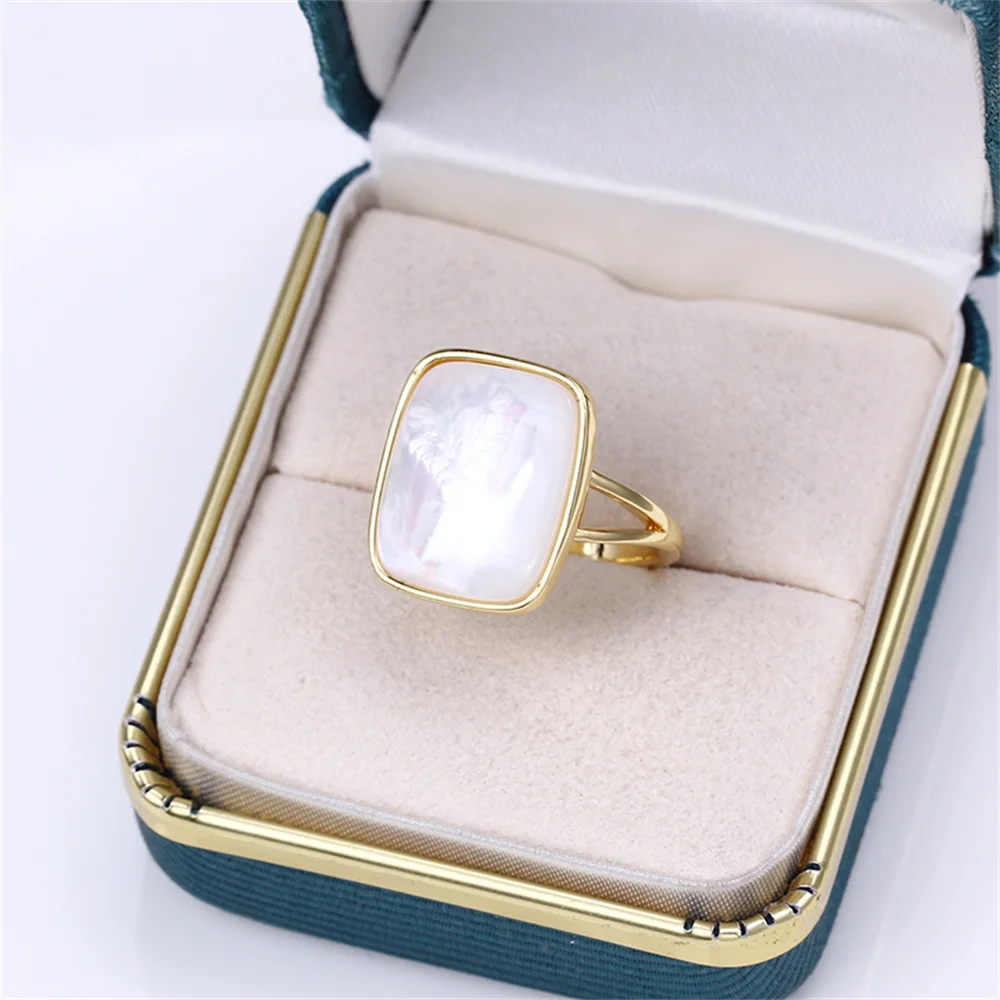Купить 14k clad gold plating real gold injection gold plated gold color white butterfly shell simple pearl ring temperament за 350рублей