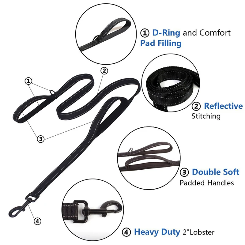 Купить 1.5m Reflective Dog Leash Heavy Duty Double Padded Handles Lead for Control Safety Training Leashes for Medium Large Dogs за 450рублей