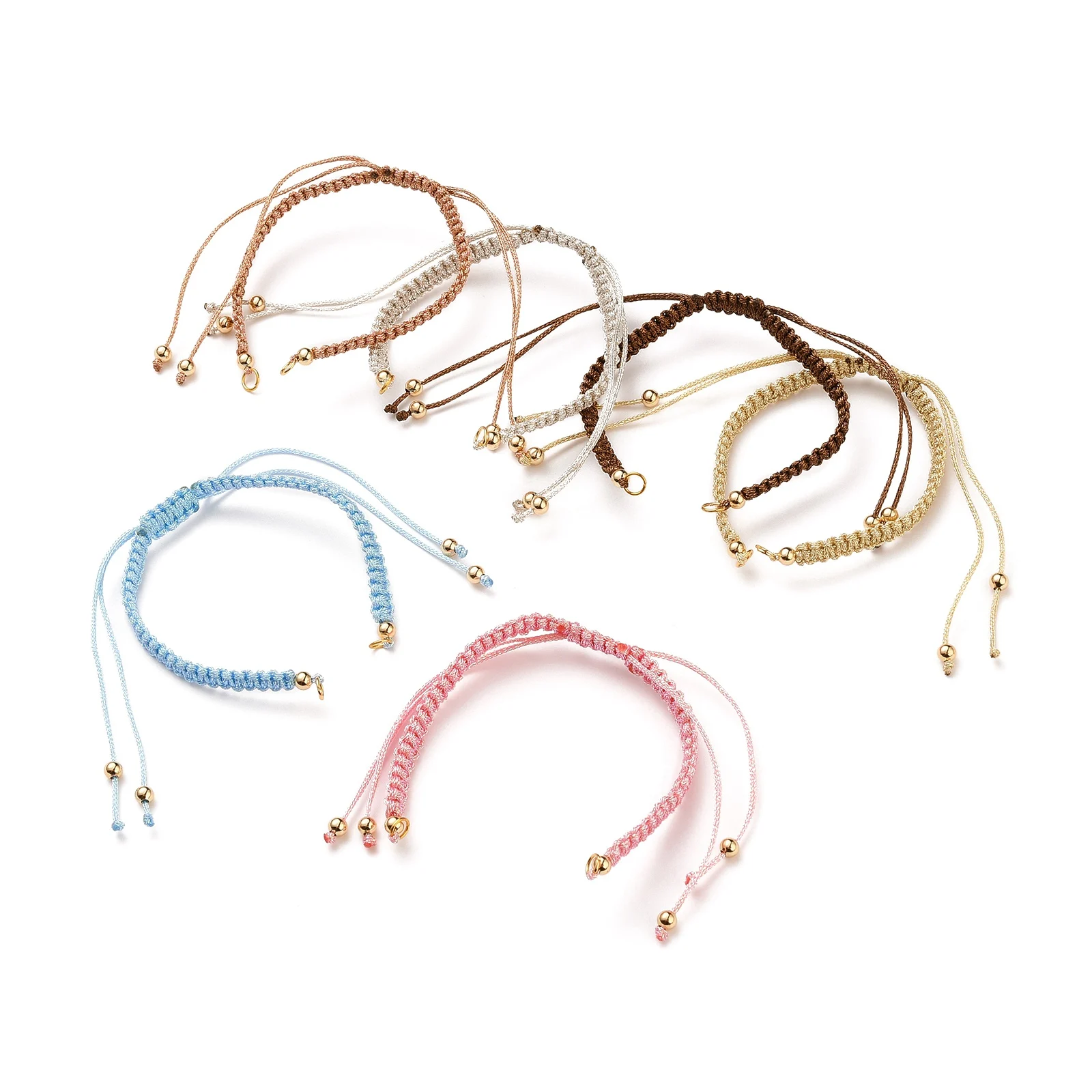 Купить 15pcs Adjustable Braided Polyester Cord Bracelet With 304 Stainless Steel Open Jump Rings Round Brass Beads For Jewelry Making за 500рублей