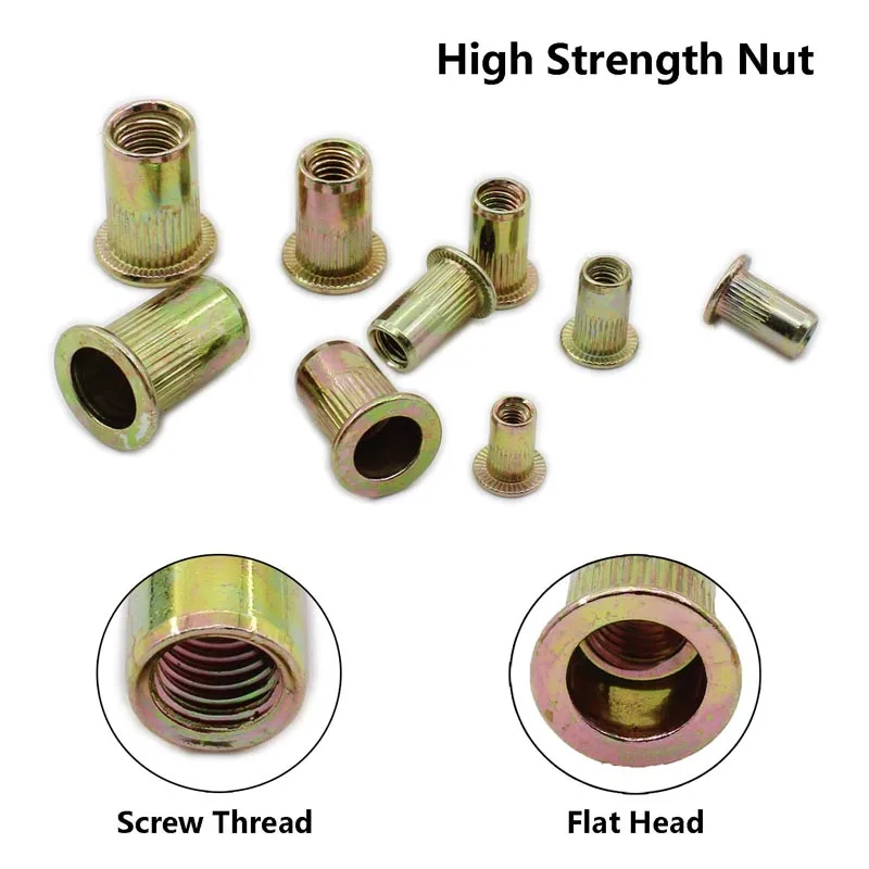 Купить 165 PCS Rivet Nut, Metric Rivet Nut Kit Carbon Steel Flat Head Threaded Insert Nut Assorted in M3 M4 M5 M6 M8,Zinc Plated Finish за 650рублей