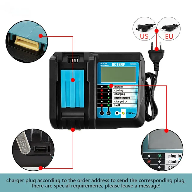 Купить 18V6Ah Rechargeable Battery 6000mah Li-Ion Battery Replacement Power Battery for MAKITA BL1880 BL1860 BL1830battery+4A Charger за 500рублей