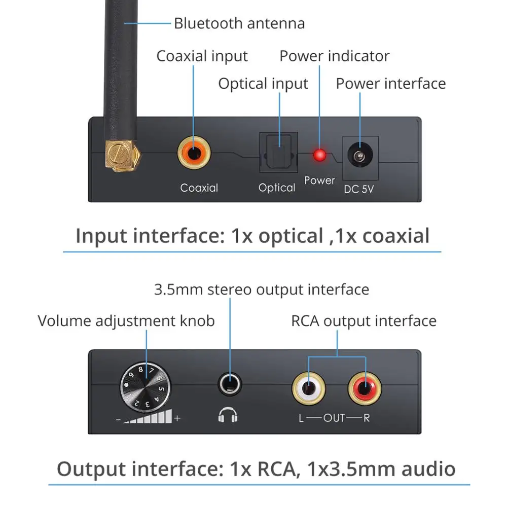 Купить 192kHz Digital to Analog Audio Converter Bluetooth-Compatible DAC Converter Optical Coaxial to RCA 3.5mm Audio Adapter за 1050рублей